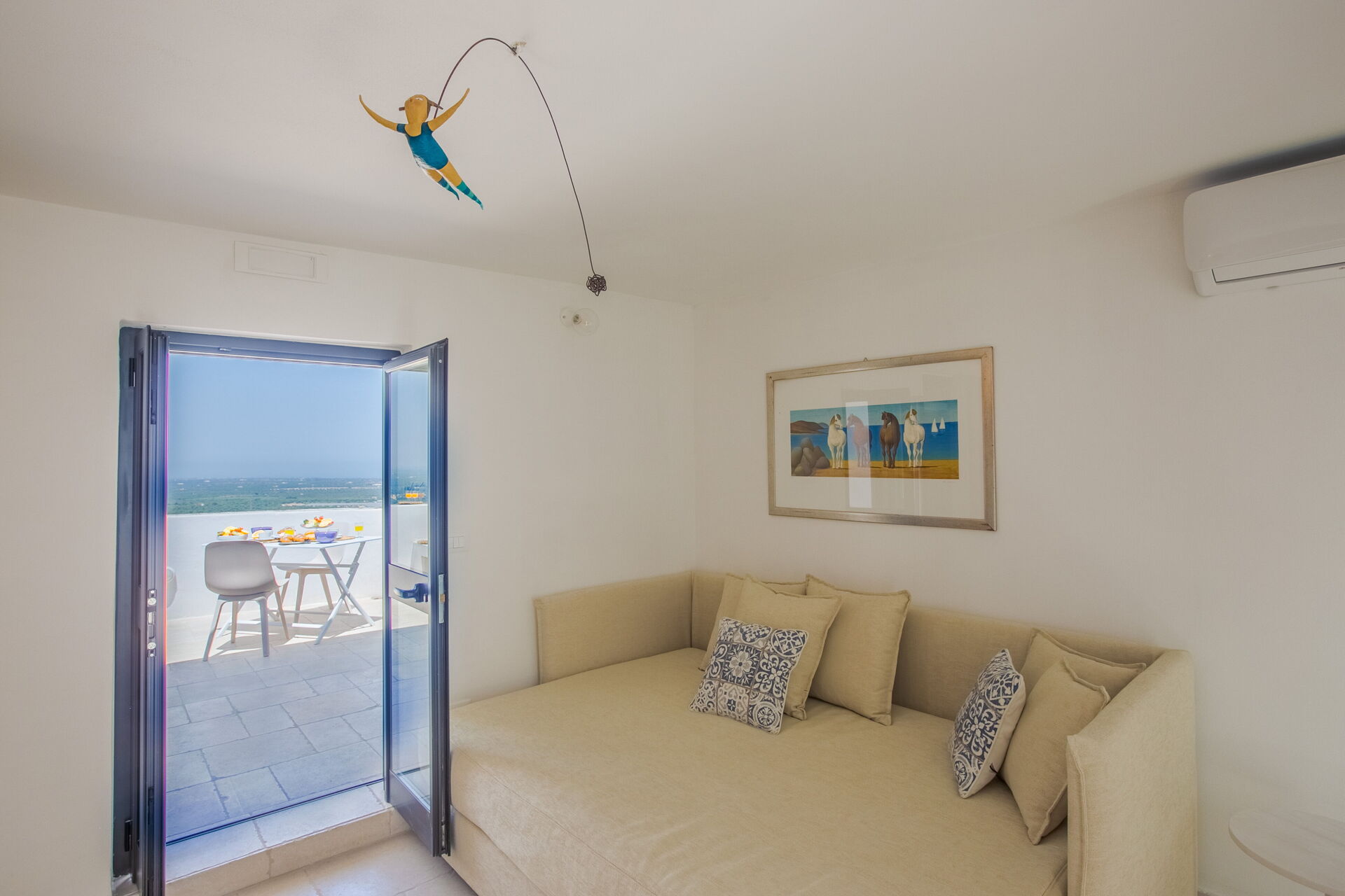 chambre à coucher: canapé-lit, climatisation, sortie sur le balcon, sortie sur la terrasse.