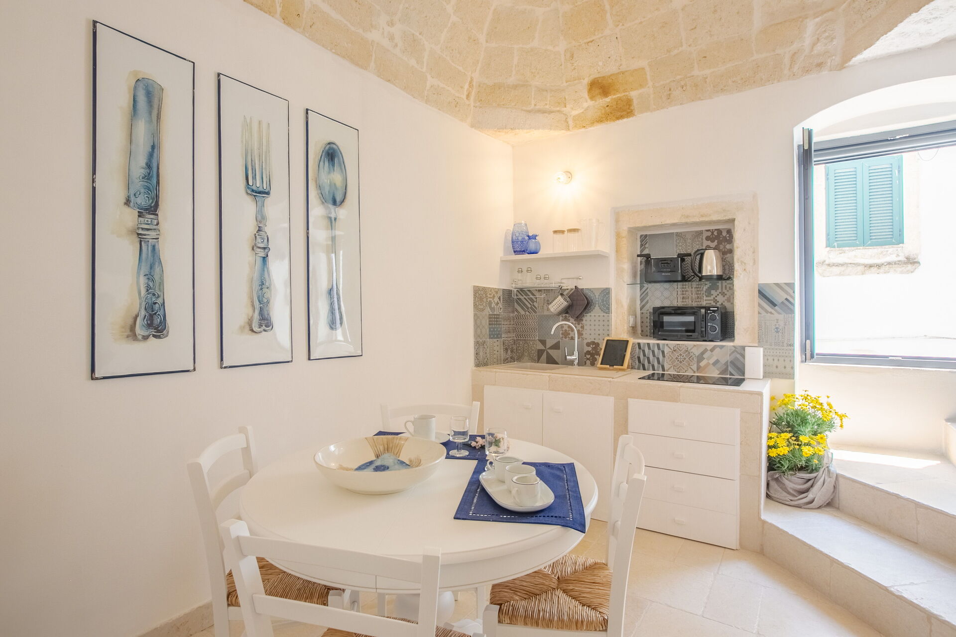 Une fois arrivés vous serez accueillis par le propriétaire, ou une personne de sa confiance, et vous trouverez une jolie propriété, propre et bien entretenue, avec vue sur la ville parfaite pour des vacances calmes en Pouilles. Pour votre plaisir vous aurez un à disposition où vous pourrez vous détendre tout en dégustant une bonne boisson fraîcheaprès une épuisante journée de achats.Un véritable avantage de la location d'une maison, au lieu de plusieurs chambres d'hôtel, est la possibilité de se détendre après une journée de visites avec la famille et les amis. Profitez d'un repas ensemble avec du vin local pour terminer la journée. Si vous aimez cuisiner pour la famille et les amis il y a une cuisine bien equipée y compris four micro-onde et réfrigérateur, ainsi que, assez de vaisselle et couverts jusqu'à quatre personnes.