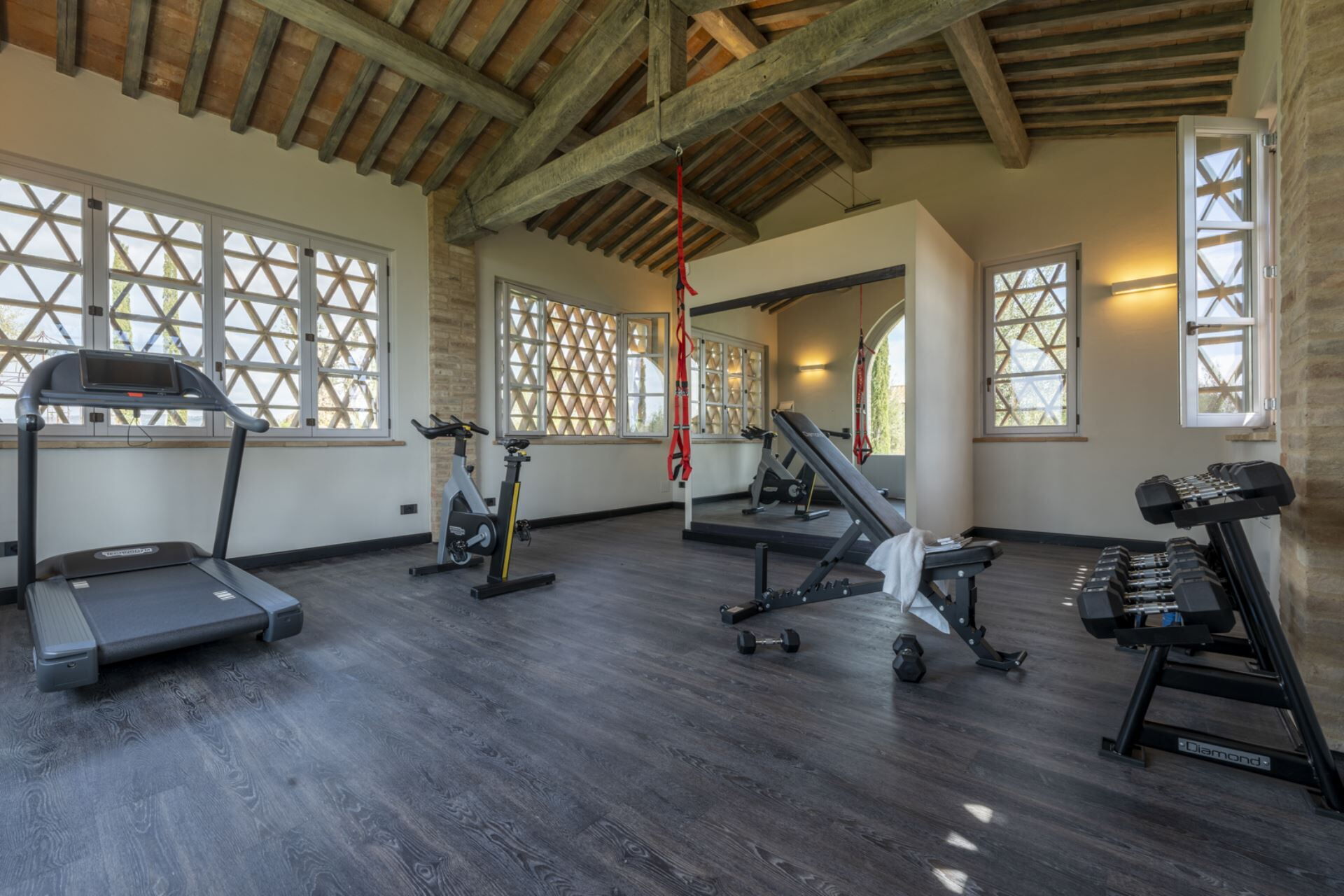 salle de fitness: appareils fitness, internet WIFI, douche.