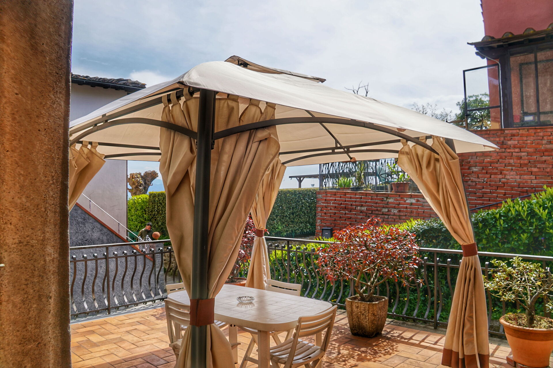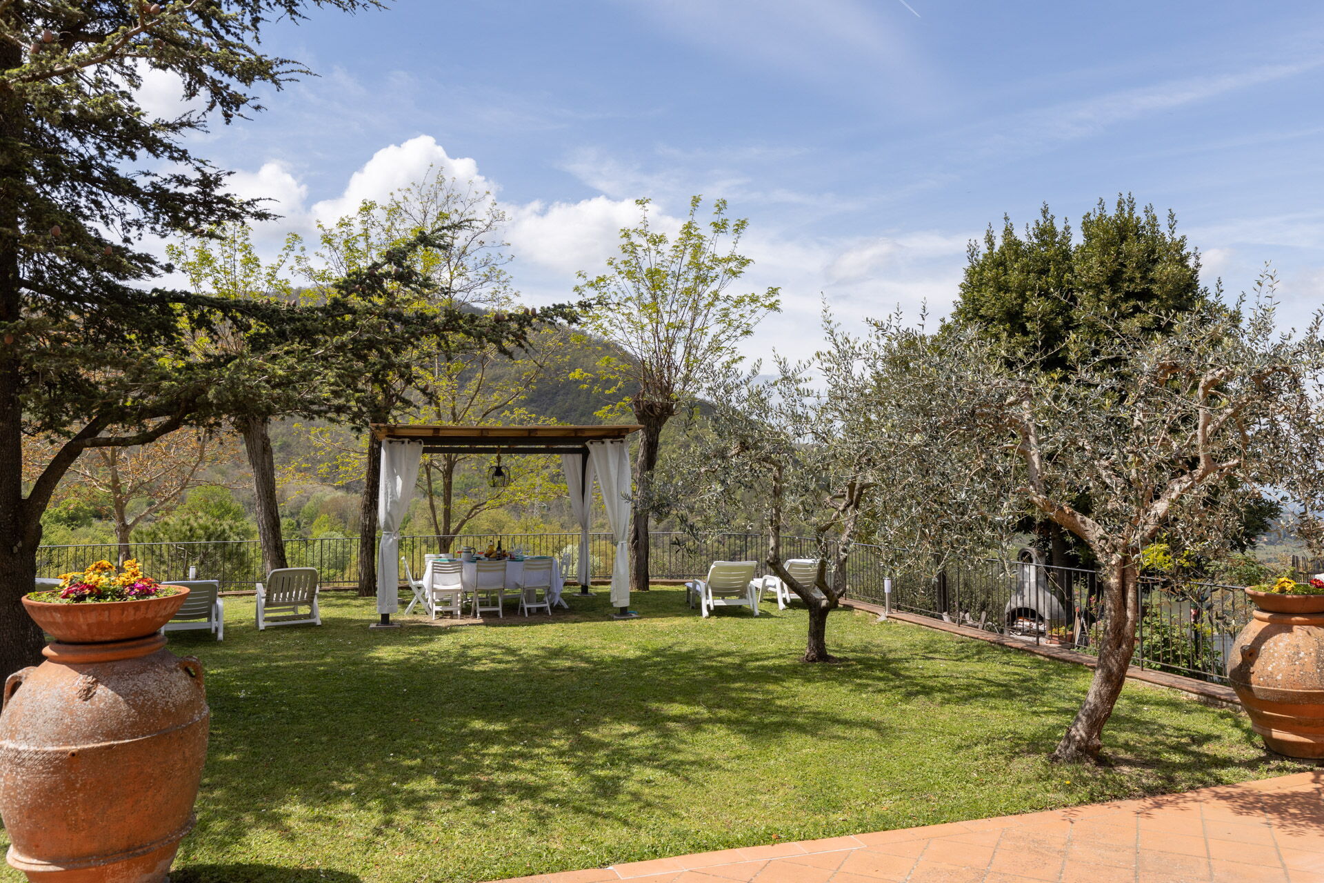 jardin (120 m2): internet WIFI, barbecue, espace extérieur pour les repas en plein air, trois tables à manger, pavillon, meuble de jardin, meuble de terrace, chaise longue, clôturé /clôturée, propriété clôturée, aire de jeux pour les enfants.