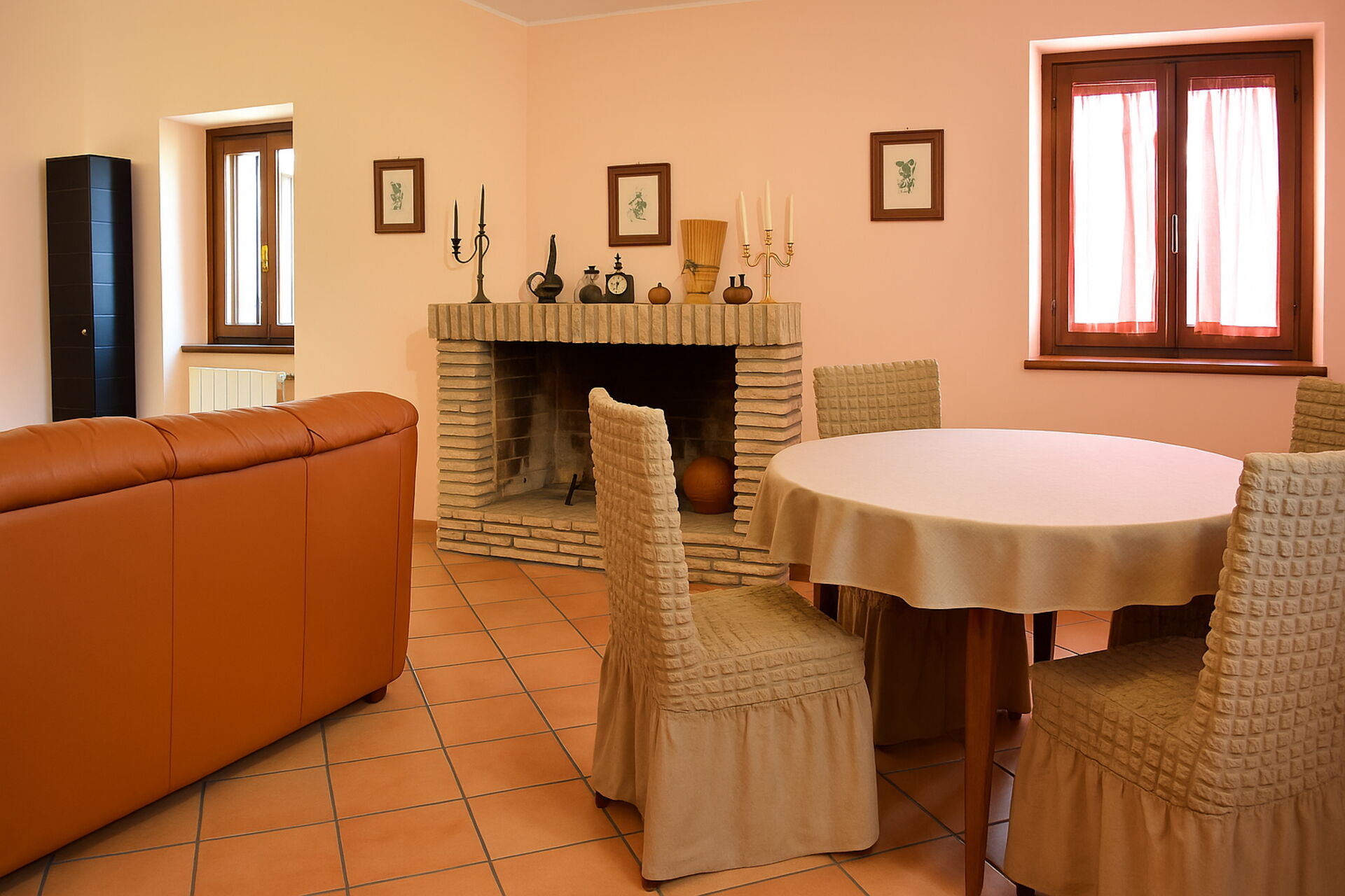 Salon: canapé, cheminée, table à manger, internet WIFI, télévision.