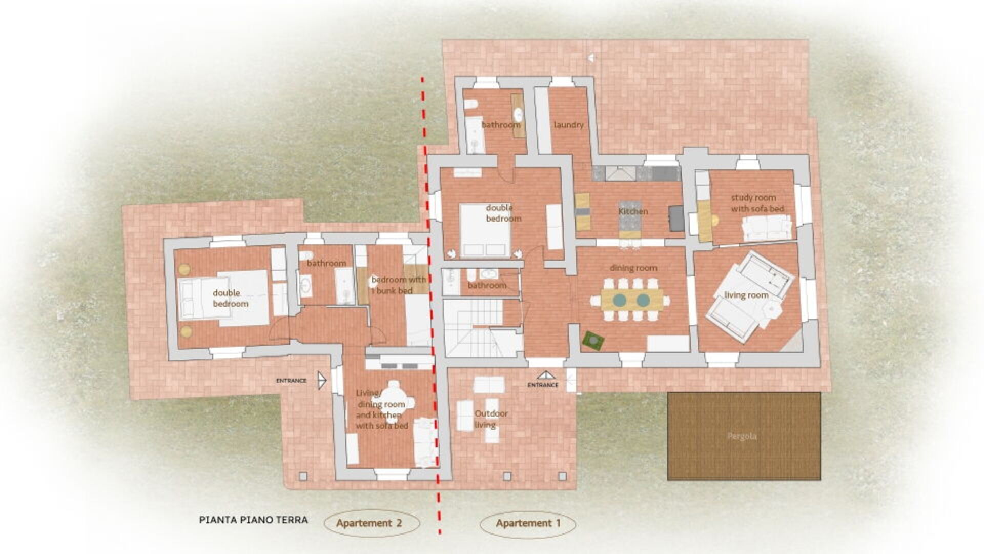 cuisine: cuisine bien équipée, table à manger (personnes: 10), lave-vaisselle, réfrigérateur, congélateur, four micro-onde, cuisinière, four, grille-pain, machine à café italienne, internet WIFI, détecteur de fumée, détecteur de co2.