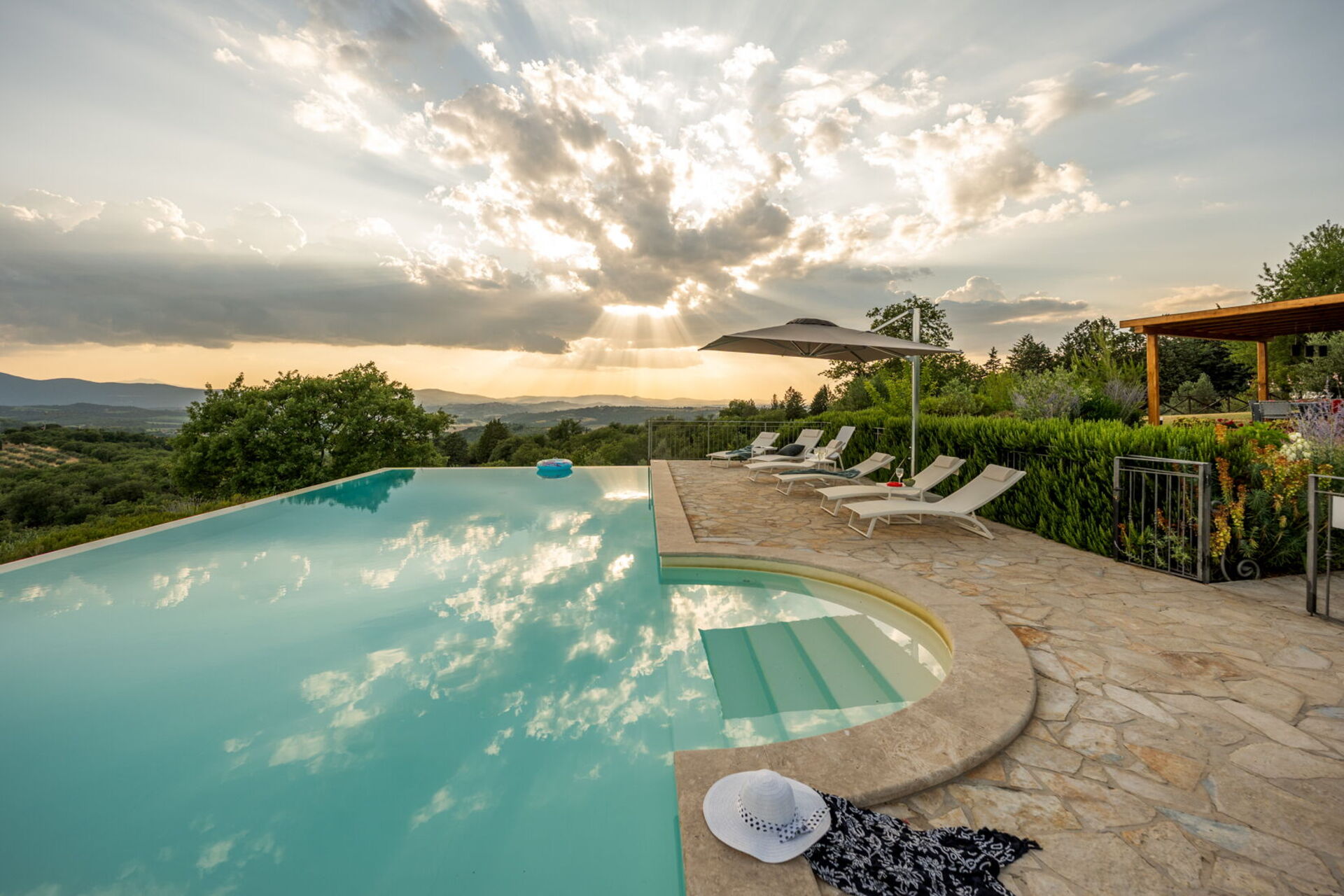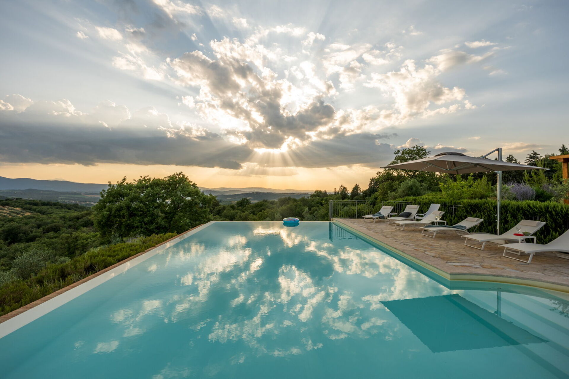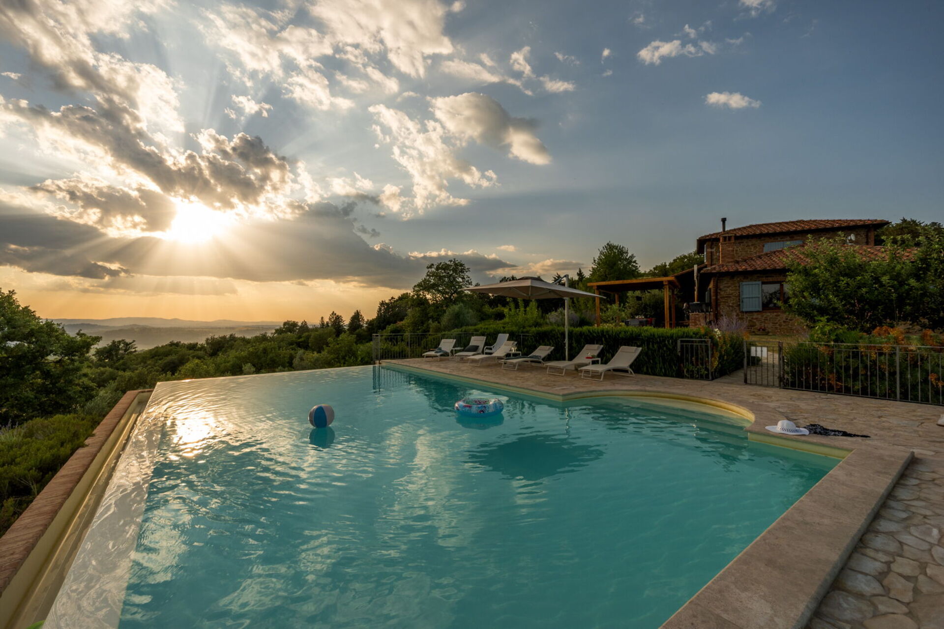 La location de vacances Casale Sunset est une jolie propriété (300 mètres carrés) qui offre air conditionné et piscine privée. La propriété peut loger comfortablement jusqu'à dix personnes dans quatre chambres à coucher avec quatre salles de bain. La propriété est idéalement située 4 km de Paciano, Italie et à seulement 33 km de Montepulciano.