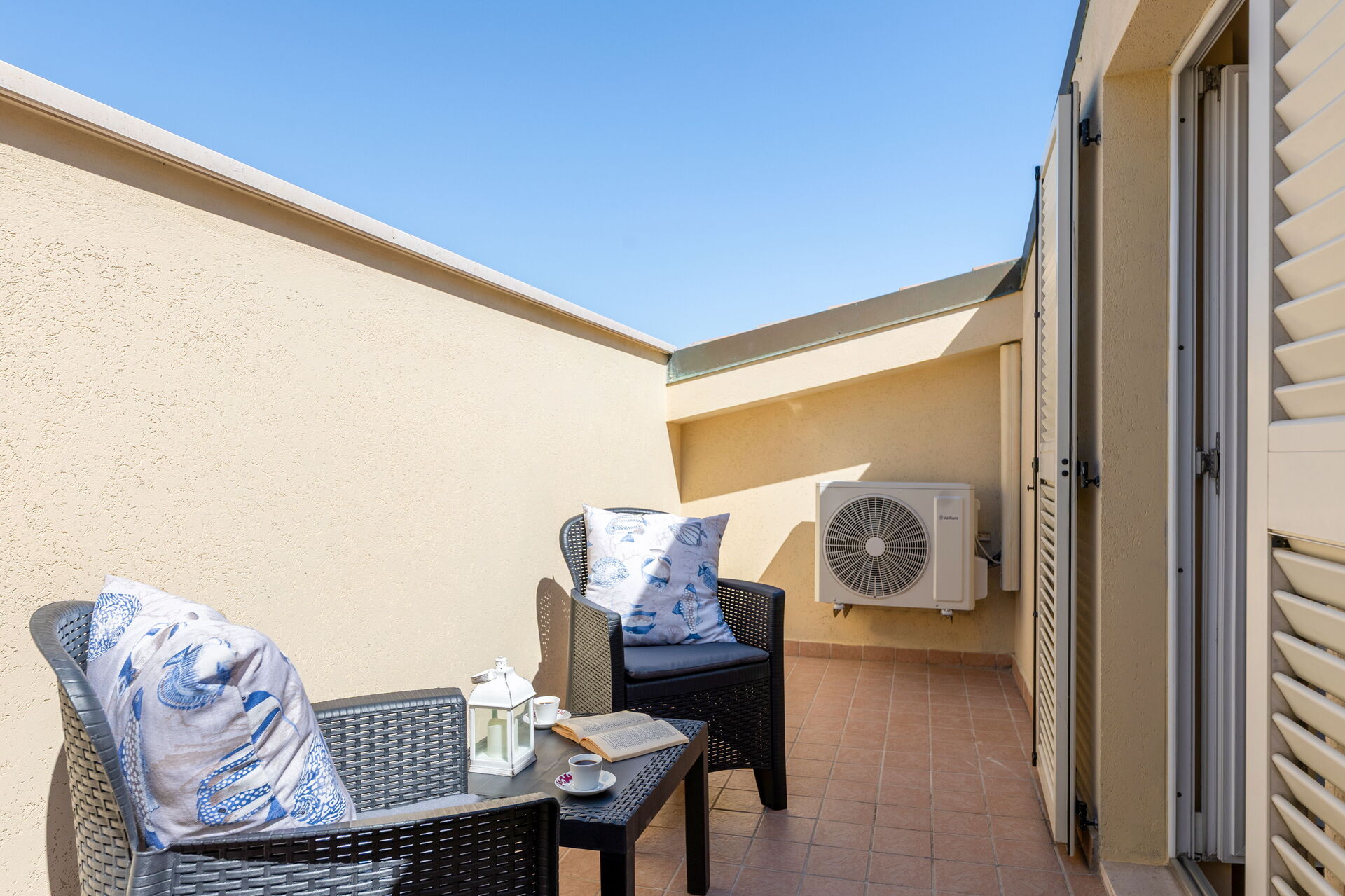 espace ouvert: table à manger, deux lits à une place, lit double, internet WIFI, climatisation, tv satellitaire, réfrigérateur, cuisinière, congélateur, lave-vaisselle, cuisine bien équipée, four, sortie sur la terrasse.