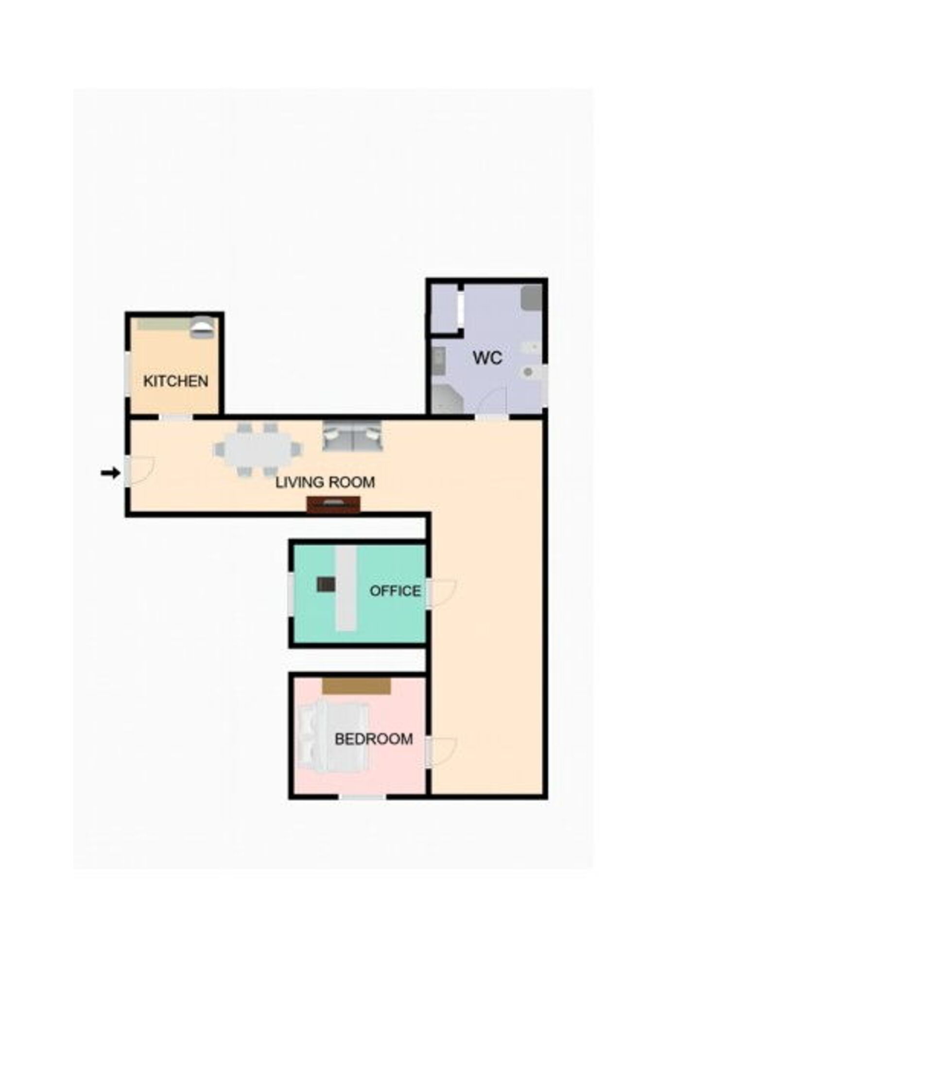 Comprend cuisine – salle de séjour, chambre à coucher, salle de bain, studio.