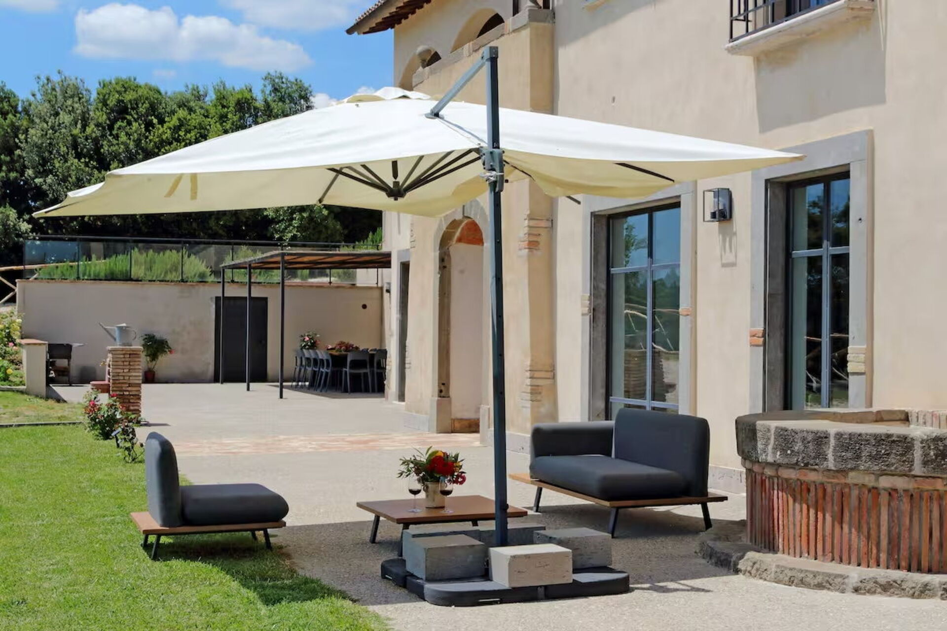 jardin: piscine (privé, en plein air), internet WIFI, barbecue, espace extérieur pour les repas en plein air, table à manger (personnes: 16), pavillon, meuble de jardin, propriété clôturée.