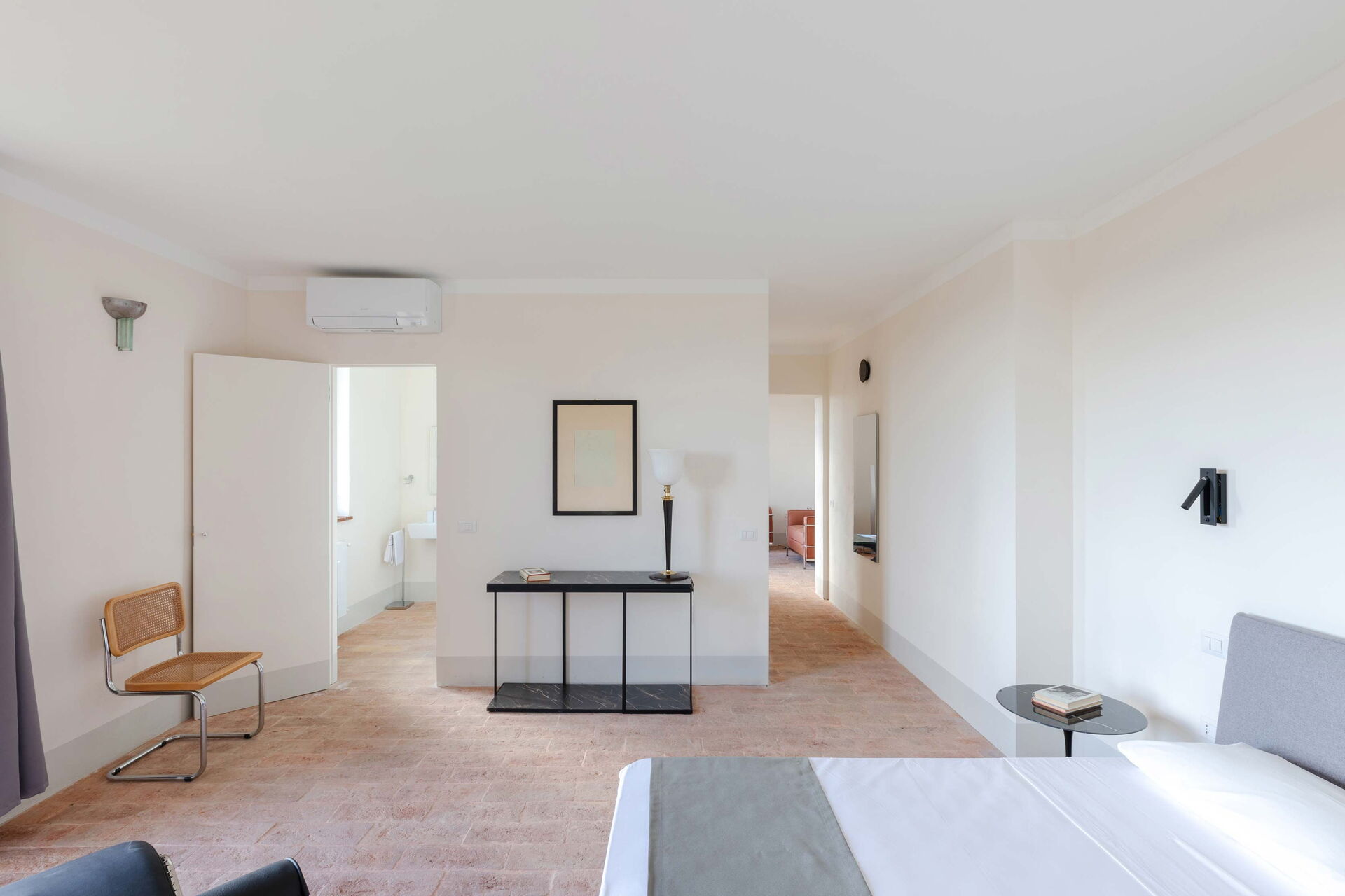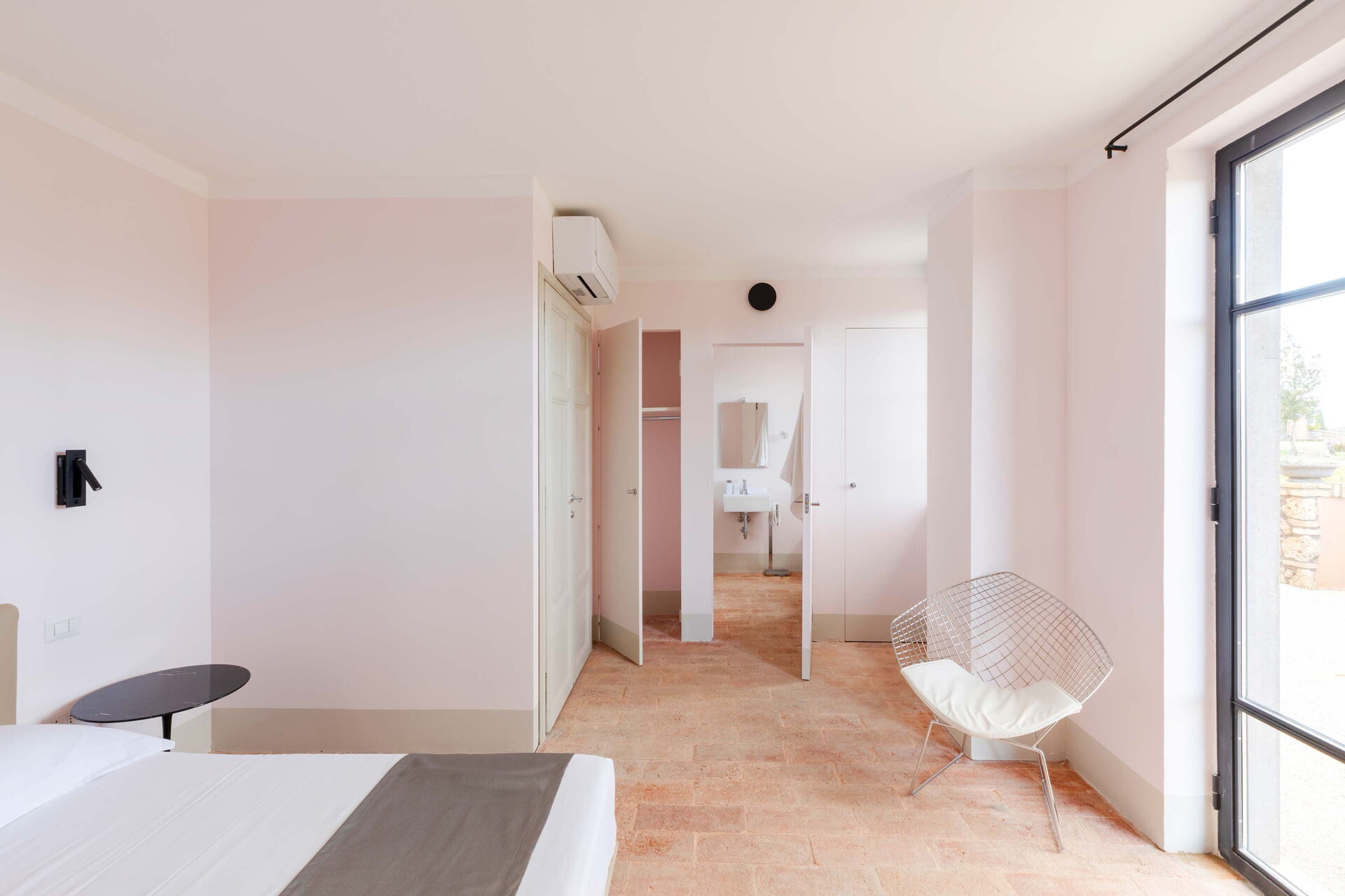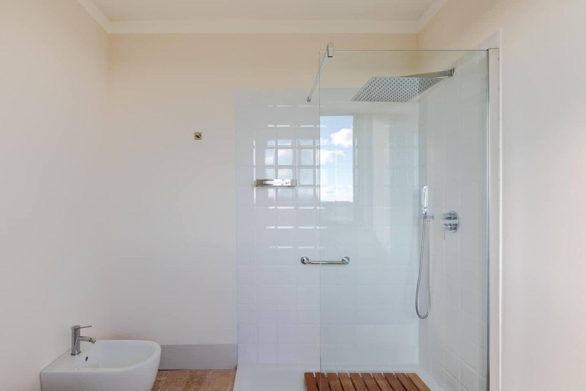 chambre avec salle de bain 1: lit double, internet WIFI, climatisation, bassin, wc, bidet, douche, sèche-cheveux, sortie sur la terrasse.
