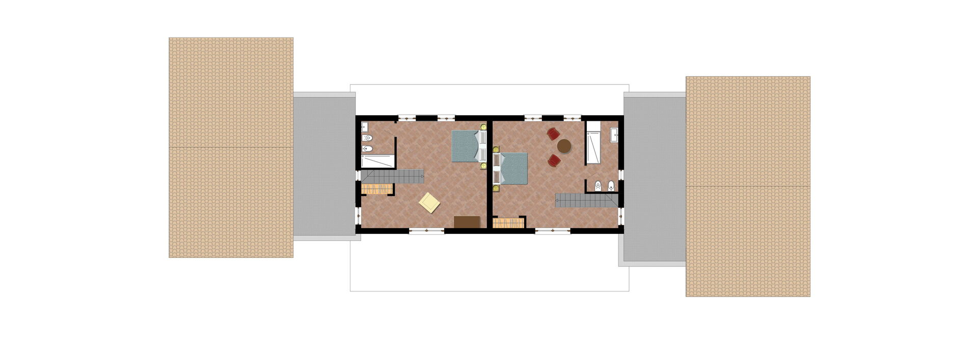 Comprend 2 chambres avec salle de bain.
