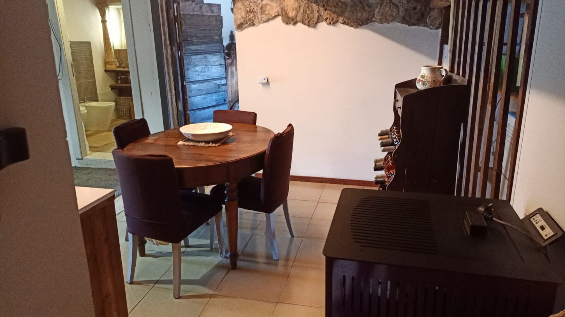 cuisine: table à manger, cuisinière, cuisinière à bois, four, internet WIFI.