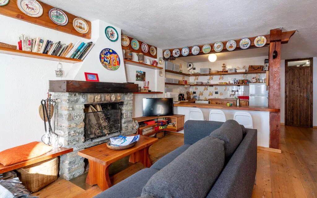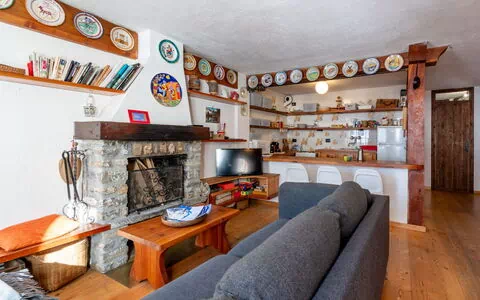 "Verrand", apt 4 pièces 80 m2 sur 2 niveaux. Aménagement fonctionnel et confortable: séjour/salle à manger avec cheminée (uniquement à titre de décoration), table pour les repas et TV. Sortie sur le balcon. Coin cuisine (4 plaques de cuisson, four, grille-pain, bouilloire électrique, micro-ondes, cafetière électrique). WC séparé. À l'étage supérieur: 2 chambres doubles, mansardées. 1 chambre, mansardée avec 1 lit et 1 x 2 lits superposés. Douche/bidet/WC. Chauffage électrique. Balcon. Belle vue sur les montagnes. A disposition: lave-linge, sèche-cheveux. Internet (Connexion WIFI, gratuit). Veuillez noter: 1 animal/ chien autorisé. Détecteur de fumée, extincteur. IT007053C2GXW2J6XR