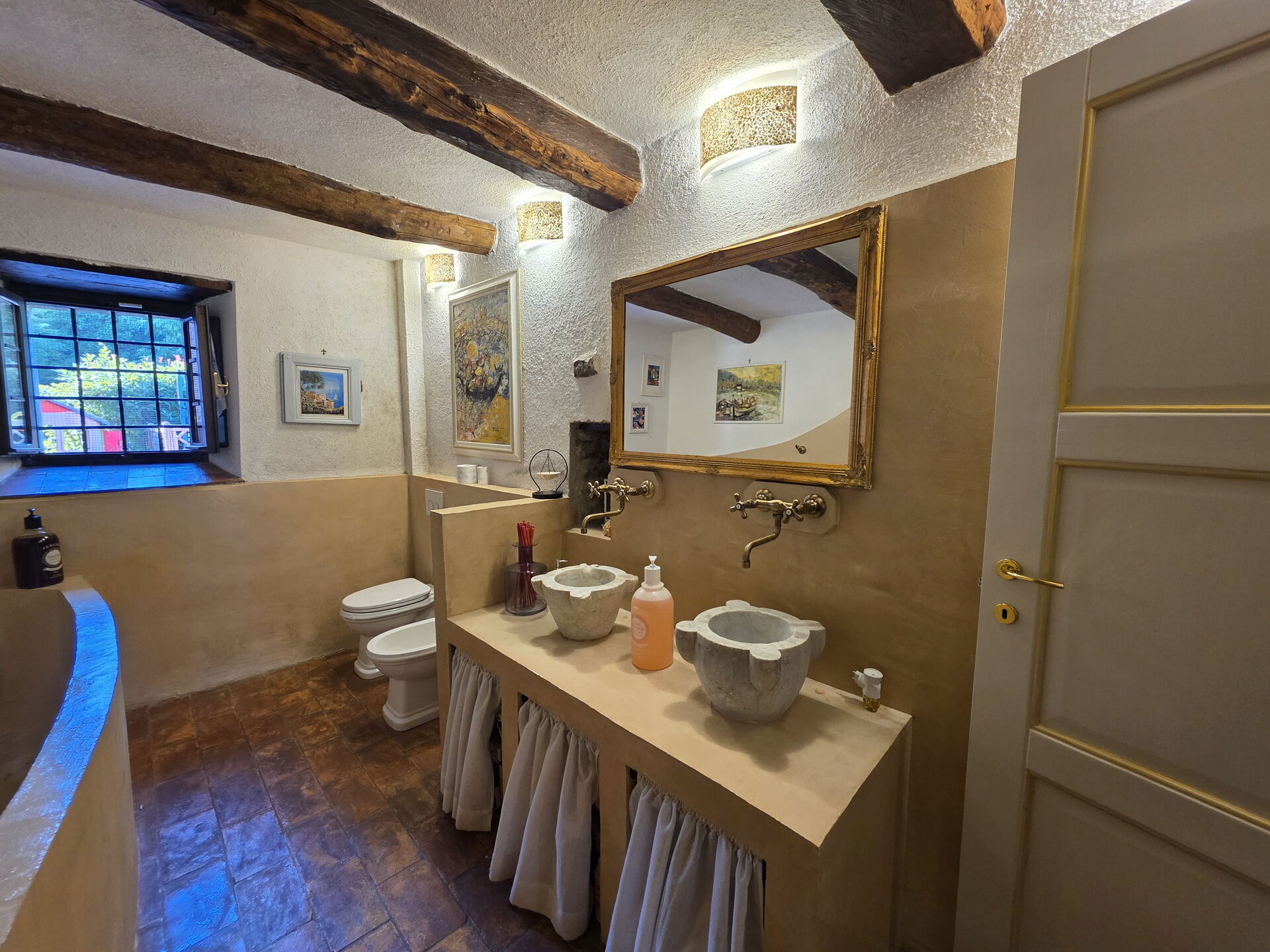 salle de bain: bassin, wc, bidet, bagnoire, douche, sèche-cheveux, internet WIFI.