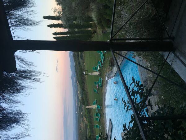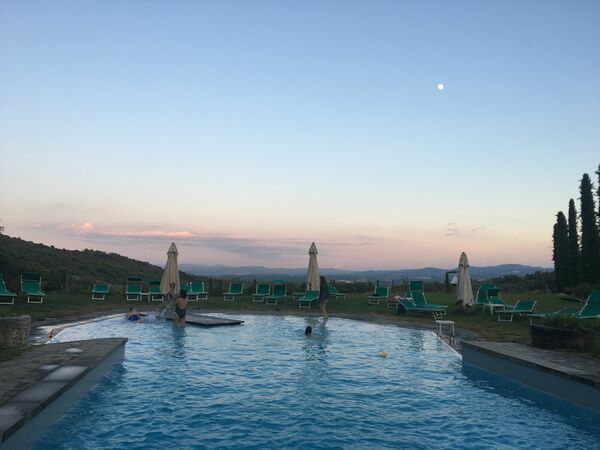 The pool was a little outdated (some loose tiles) and quite a steep climb. But nice sunbeds and fantastic views. Large umbrellas. Also nice that there was a table tennis and football. We enjoyed the delicious traditional meal together with the other 43 guests. Andrea is a fanastische host. We took some wine and olive oil from the estate back home. Warm soothing atmosphere. Excellent washing machine in the house available. WIFI at the reception free of charge. A little remote (about 3 km from the Chianti Road). To get fresh bread you will drive 8 km (and back). From Figline within half houryou can reach Florence by express train (recommended). We enjoyed the beautiful surroundings. Fam. Ter Borg and Steur from Paterswolde (4 teenagers).Conseilleriez-vous ce logement à un ami? Oui