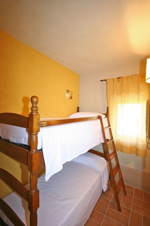 35 m2 Rez-de-chaussée: séjour avec coin cuisine et coin repas, chambre double, chambre avec lits superposés, salle de bains avec douche (sans fenêtre).