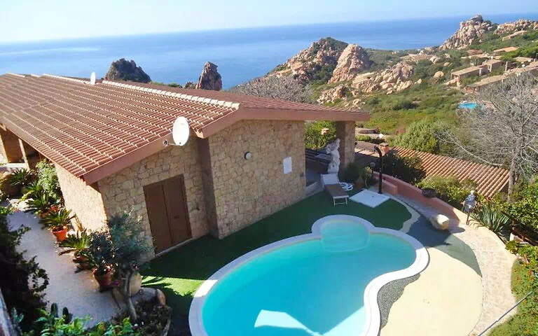 Villa "Gatti", de 2 étages. Situation ensoleillée sur un versant, à 1 km de la mer. A usage privé: jardin sur plusieurs niveaux, piscine en forme d’haricot (20 m2, profondeur 120 - 160 cm, disponibilité saisonnière: 01.Mai. - 15.Oct.) avec marches intérieures. Douche extérieure, barbecue. Sentier en escalier jusqu'à la maison. Parking public 50 m. Magasin d'alimentation 1 km, restaurant 1 km, bar 1 km, arrêt de bus 9 km, plage de sable "Li Cossi" 3 km (petit[e]). Tennis 5 km, centre équestre 10 km. Veuillez noter: voiture recommandée.