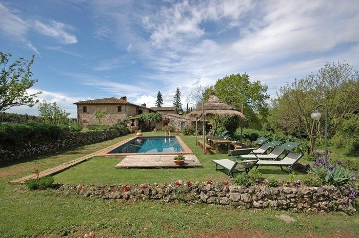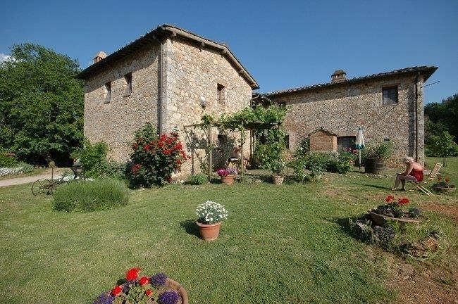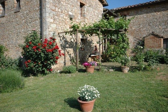 Premier étage (accès par une loggia privée): séjour/salle à manger (TV-Sat) avec canapé-lit double et coin-cuisson (petit four à micro-ondes, four, freezer), une chambre double (sans porte) avec un lit supplémentaire à une place et vue sur le château de Monteriggioni, salle de bains avec douche.