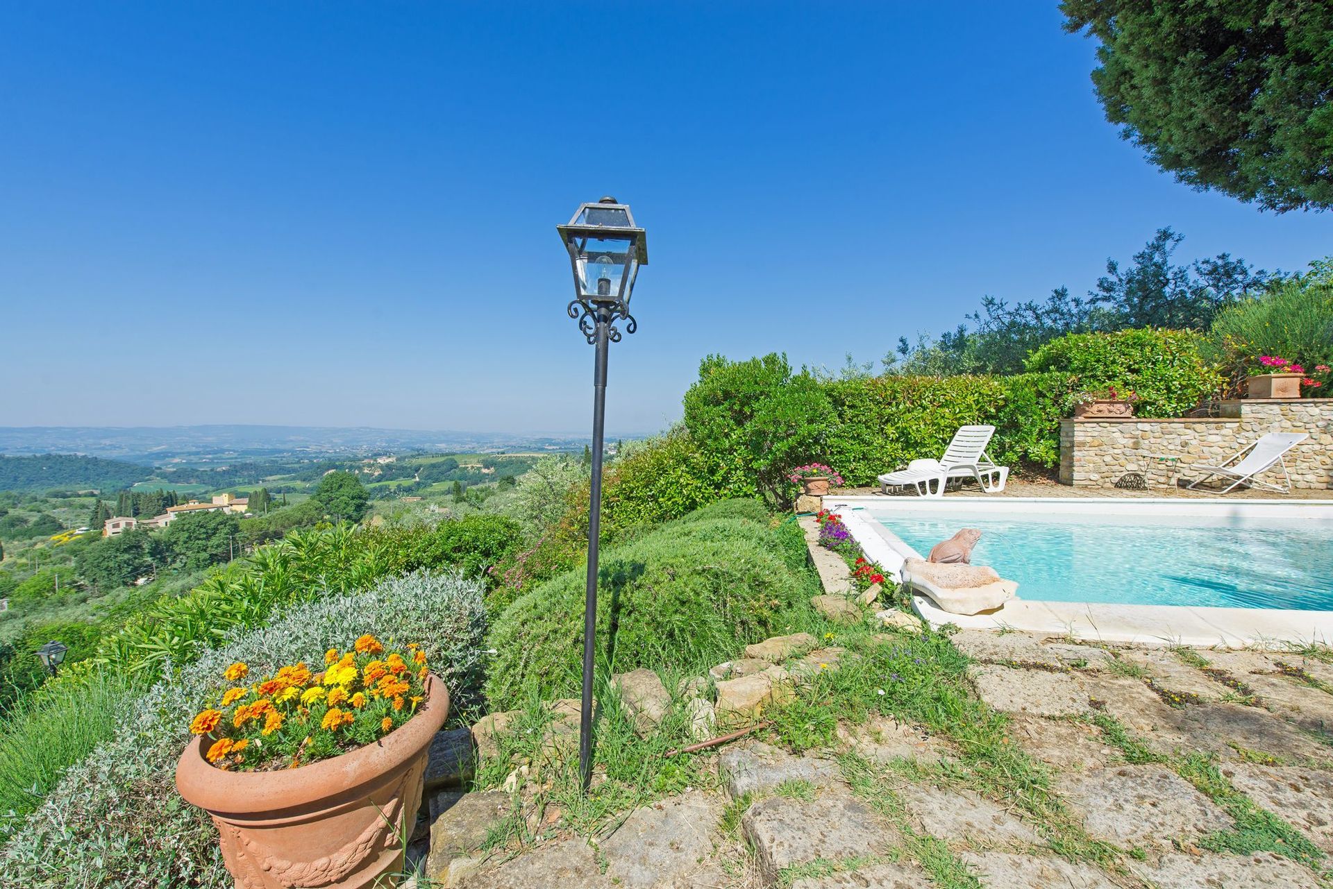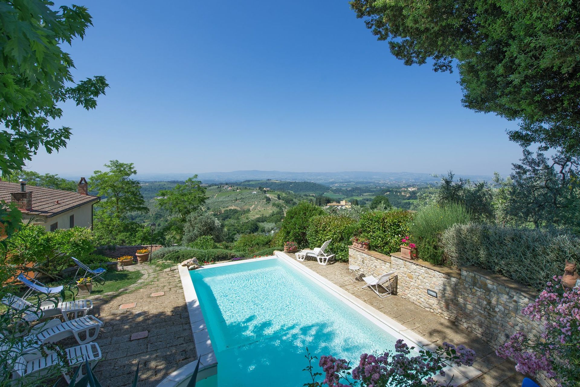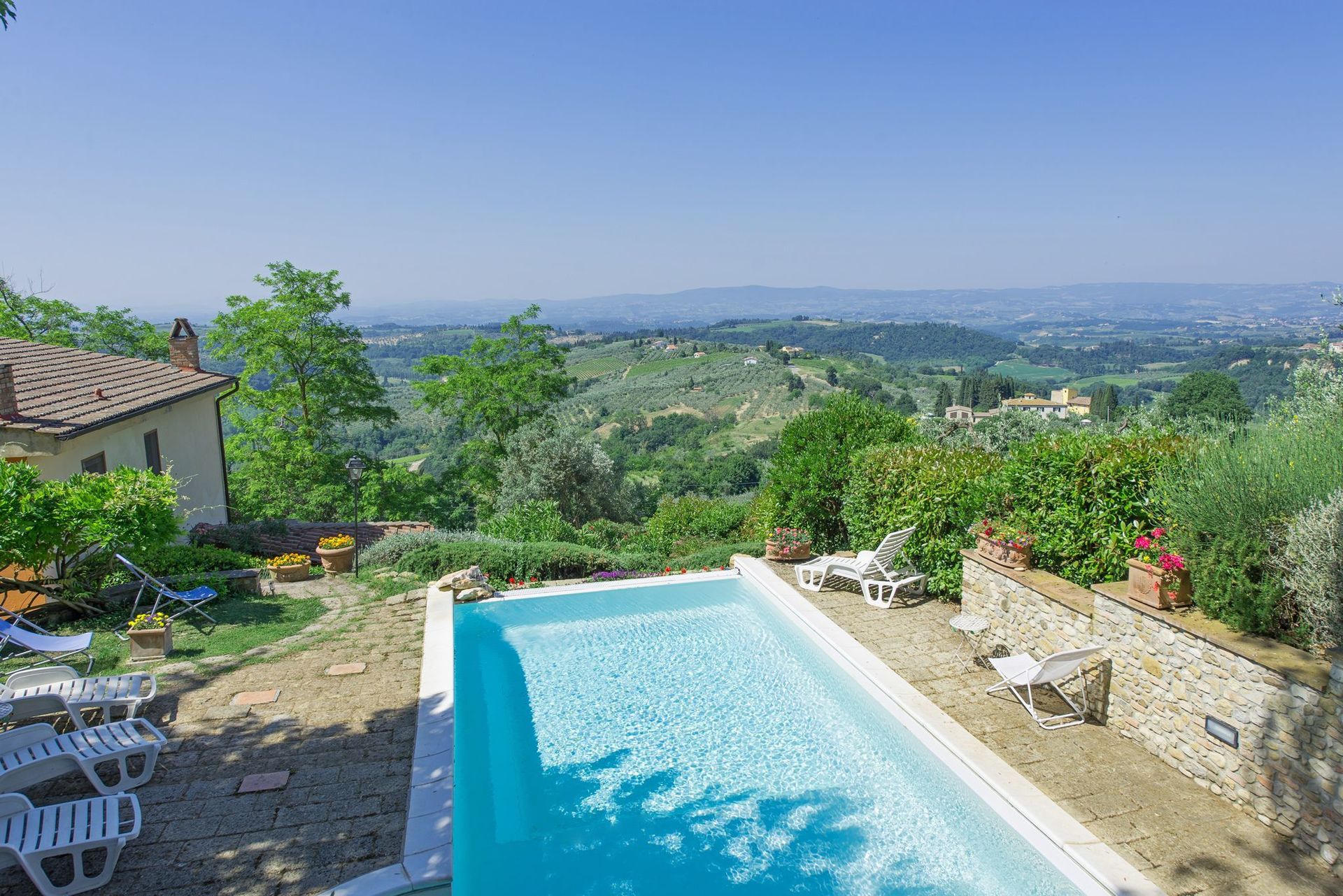 Brilliant place. Awesome garden with shade, a pool with a view, very friendly landlords, close to Florence, Siena, San Gimignano. We were there in July.