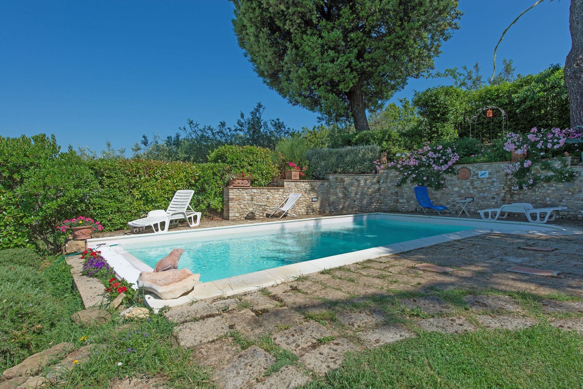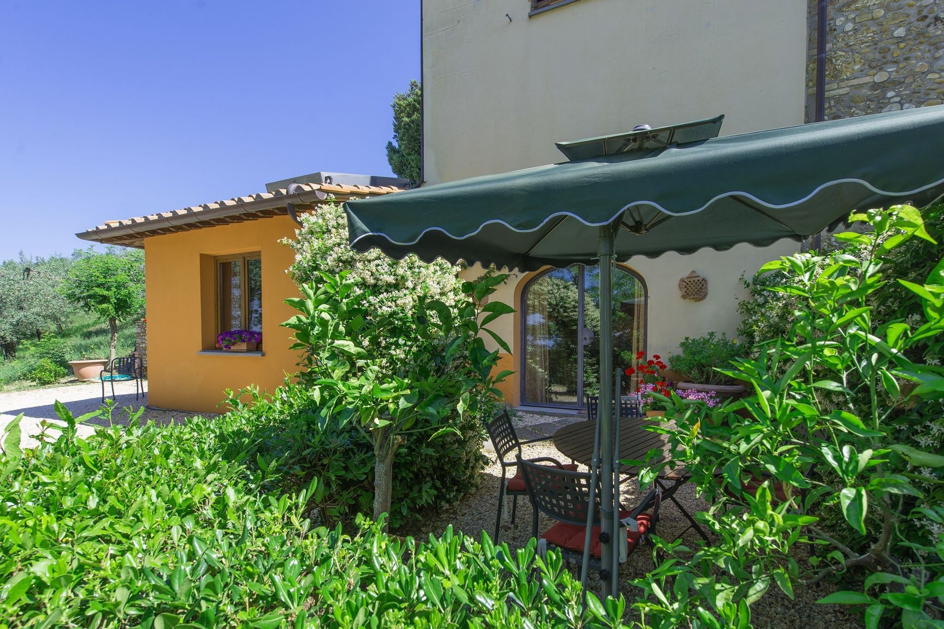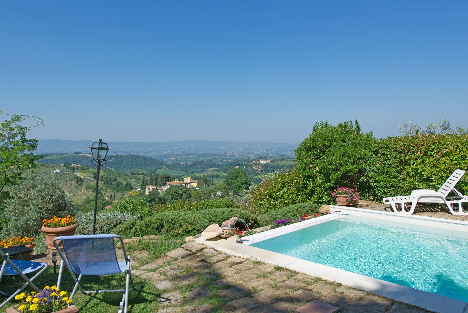 Brilliant place. Awesome garden with shade, a pool with a view, very friendly landlords, close to Florence, Siena, San Gimignano. We were there in July.