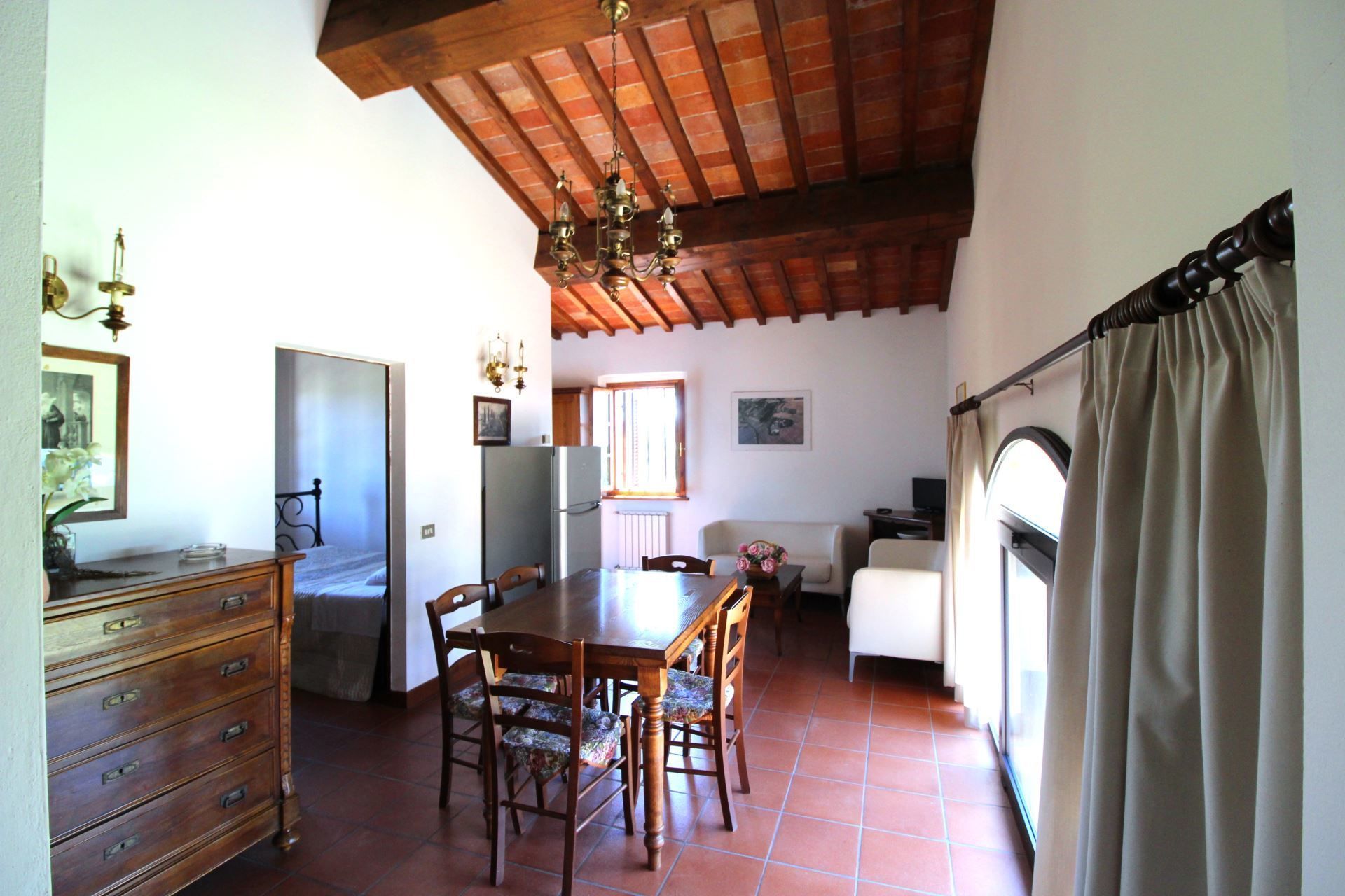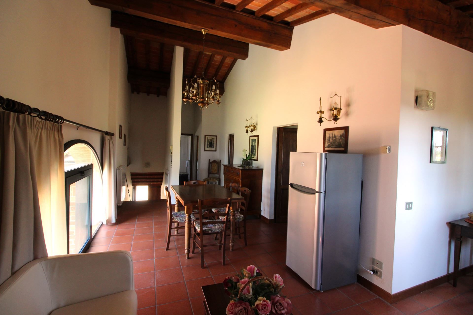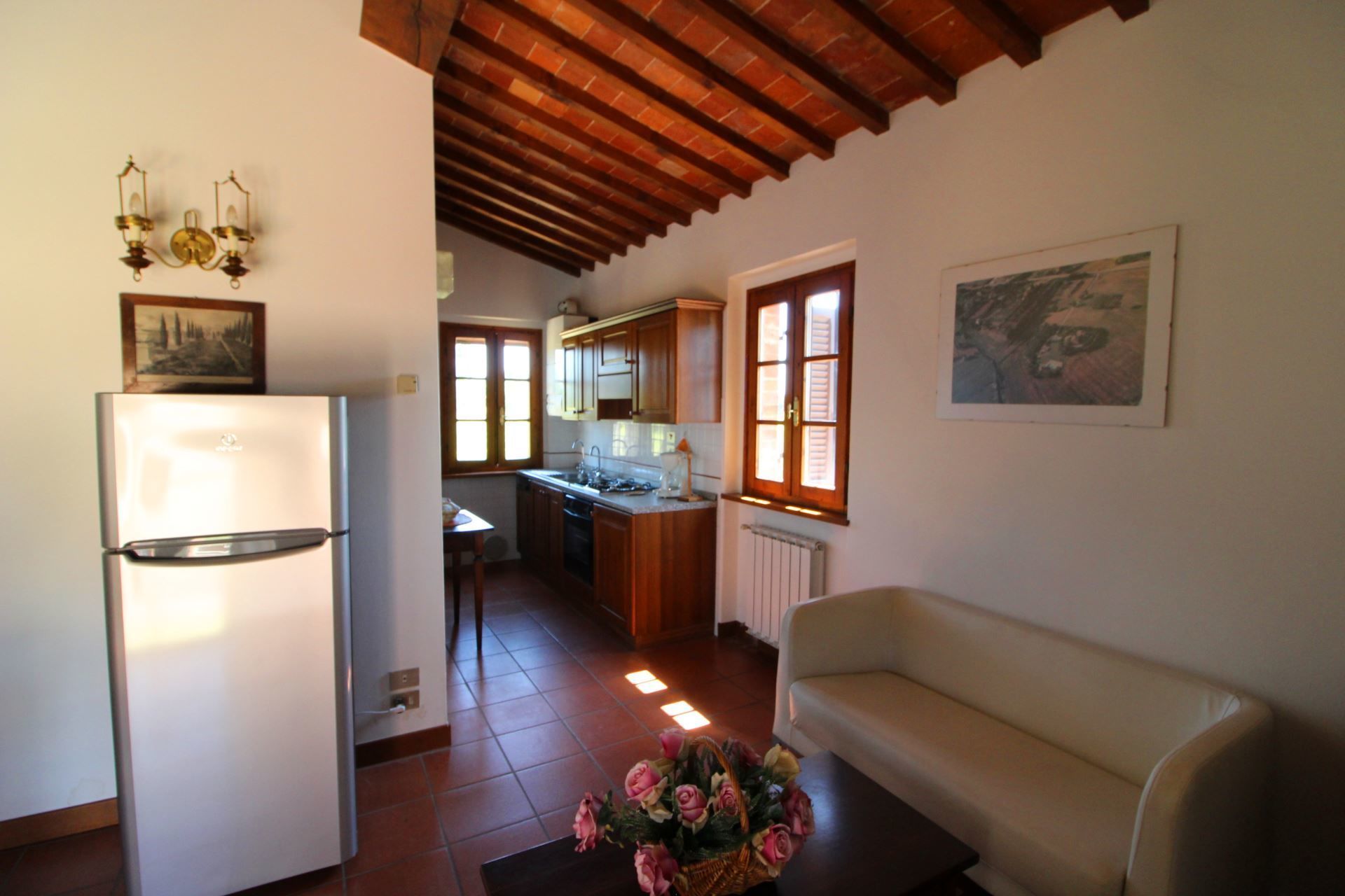 Appartement situé au premier étage composé de salle de séjour/salle à manger avec coin cuisine, chambre matrimoniale, chambre avec un lit 'à la française' , chambre avec deux lits d’une personne, salle de bains avec douche.