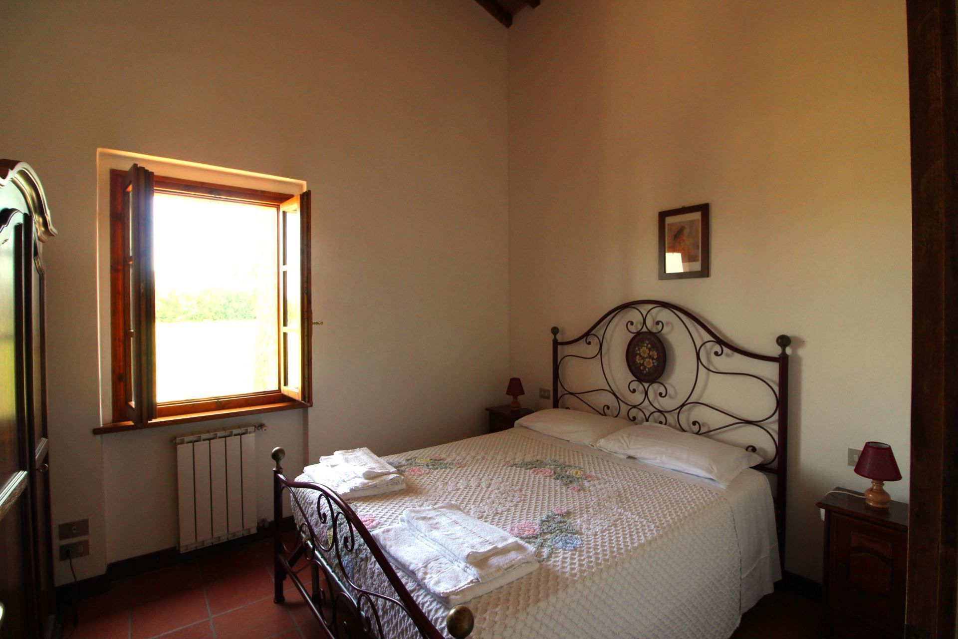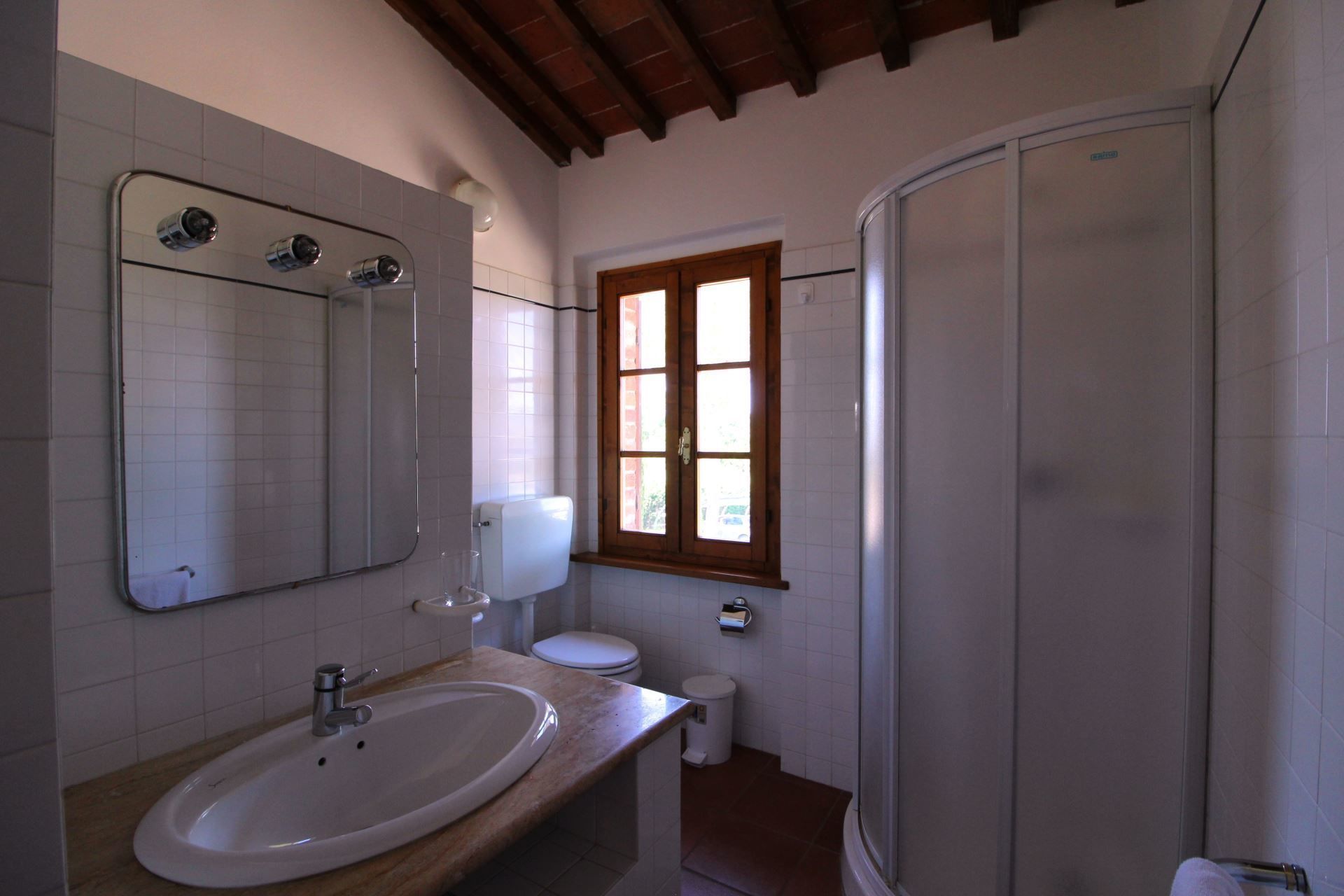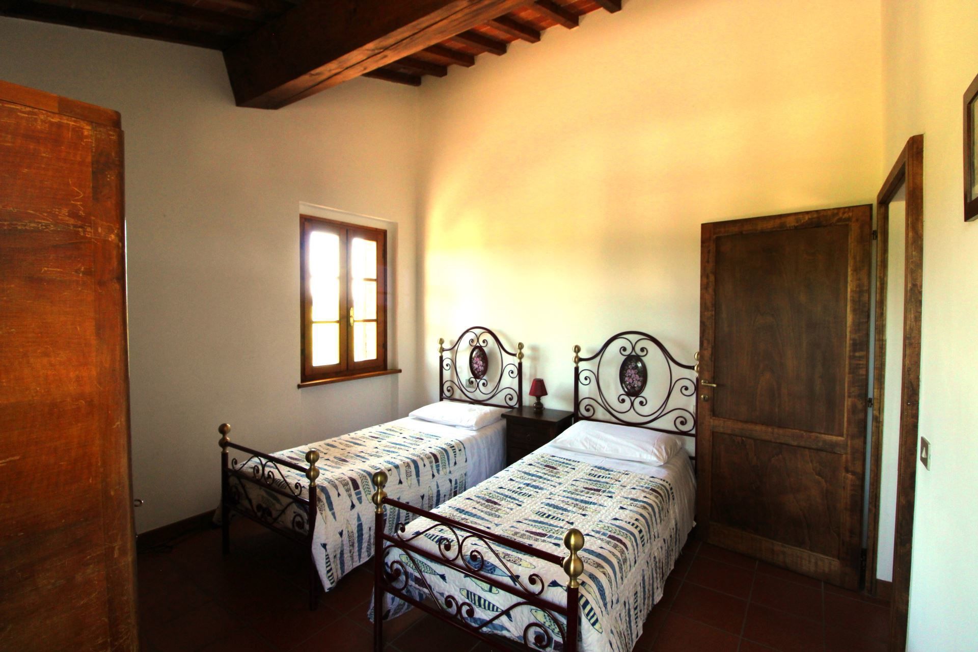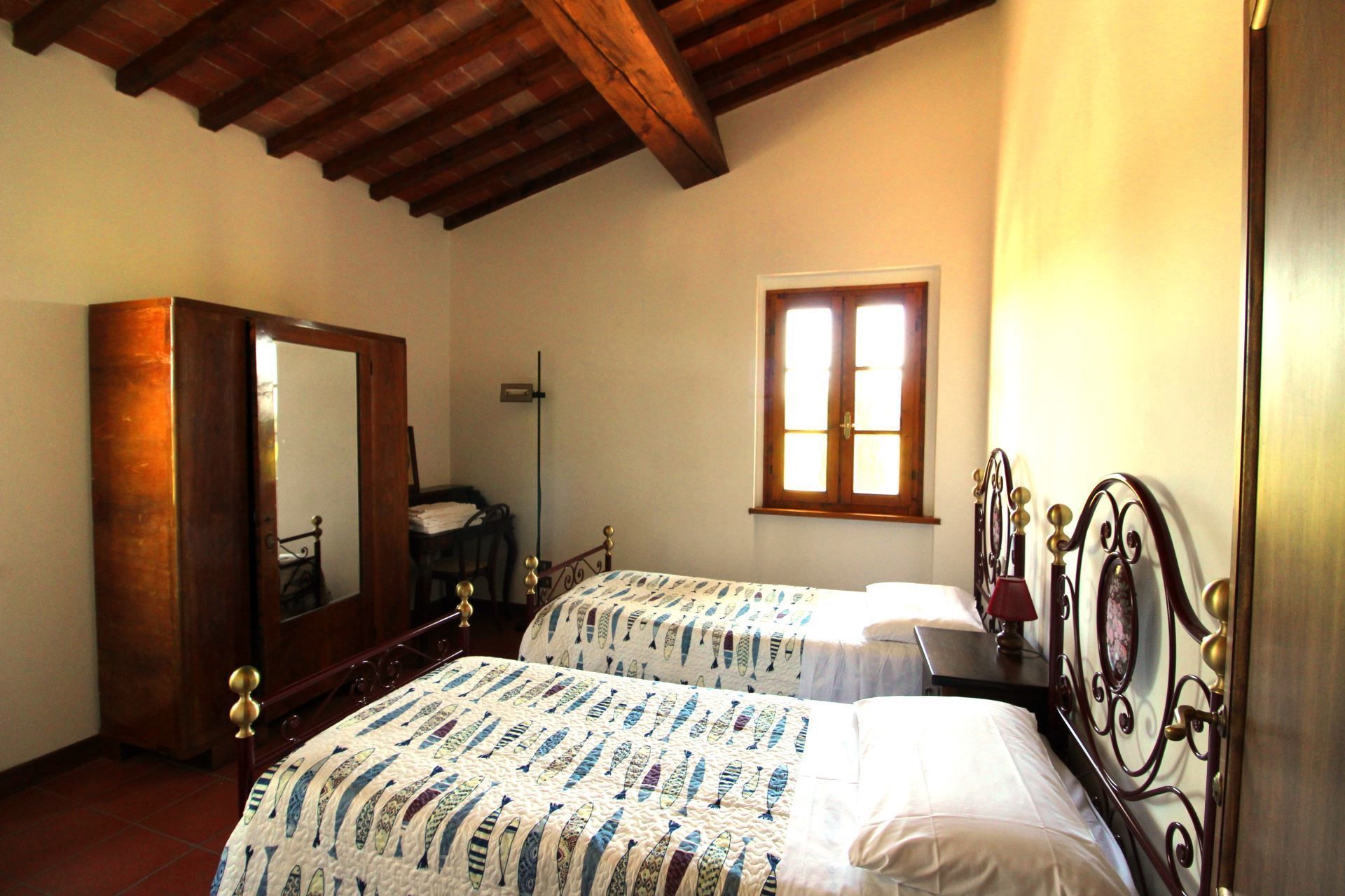 Appartement situé au premier étage composé de salle de séjour/salle à manger avec coin cuisine, chambre matrimoniale, chambre avec un lit 'à la française' , chambre avec deux lits d’une personne, salle de bains avec douche.