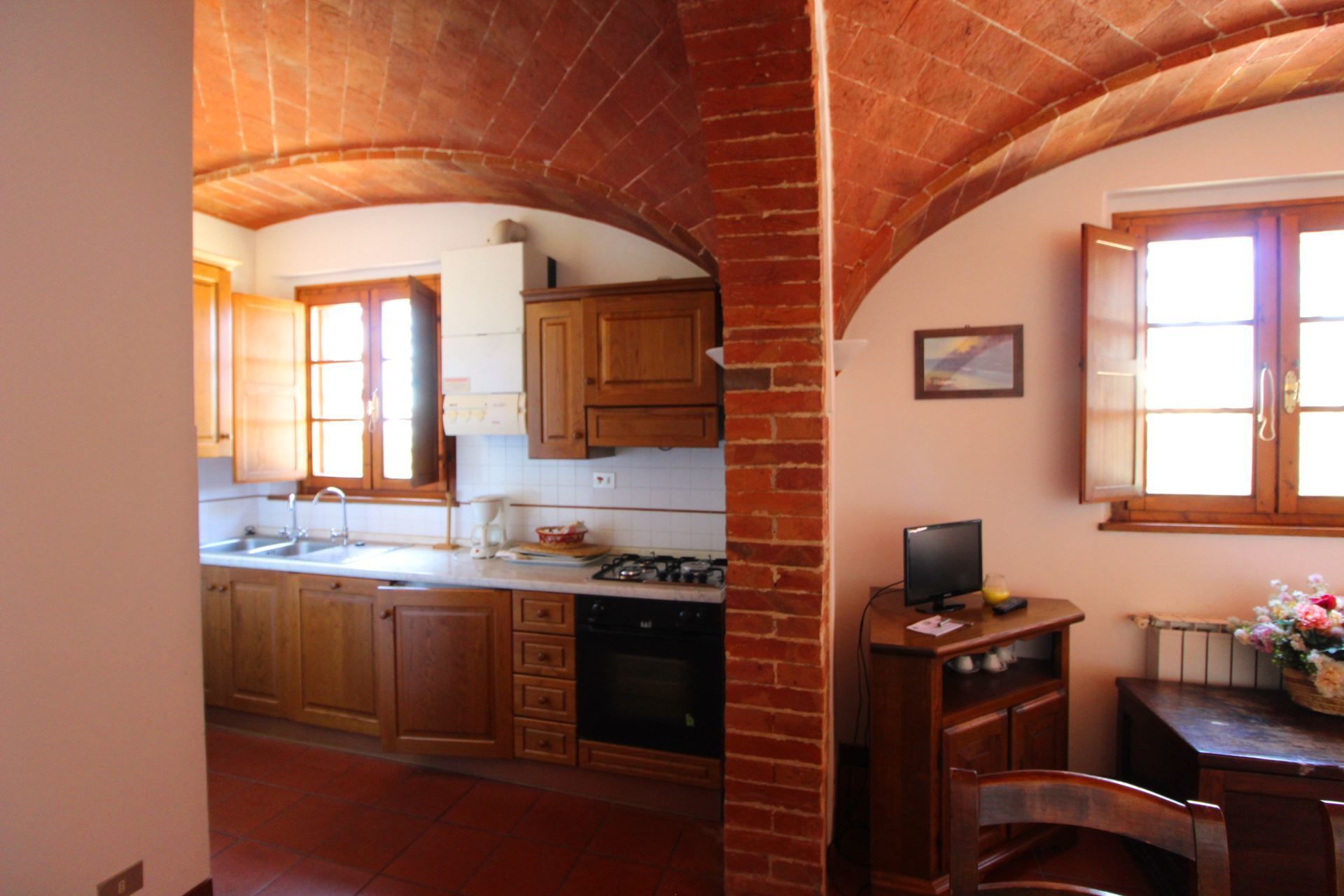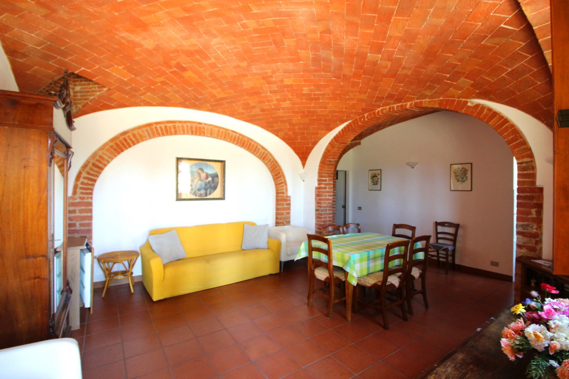 Appartement au rez-de-chaussée, avec plafonds anciens et voûtes de briques en berceau. Agréable porche à arcades. Il comprend salle de séjour/salle à manger avec coin-cuisine, deux chambres matrimoniales, une chambre avec deux lits d’une personne, deux salles de bains avec douche.