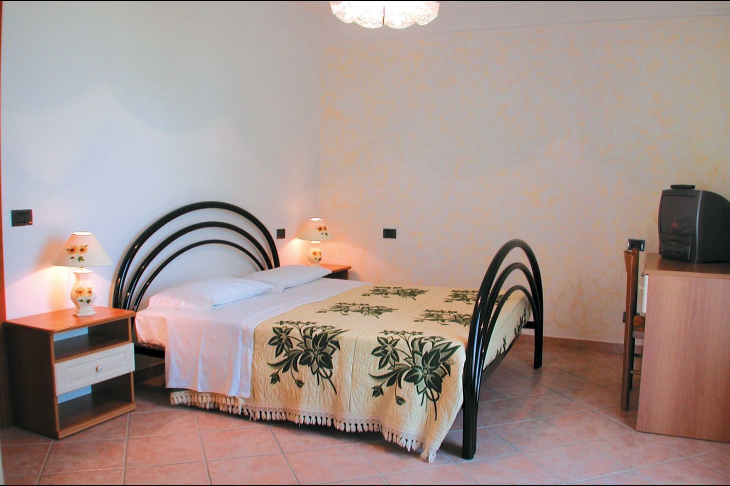 Appartement au premier étage avec accès par escalier externe et terrasse équipée avec des meubles de jardin. Salon-salle de séjour avec coin-cuisine et canapé-lit avec lit à deux places, chambre avec lit à deux places et salle de bains avec douche. Terrasse donnant sur la chambre et sur le salon.