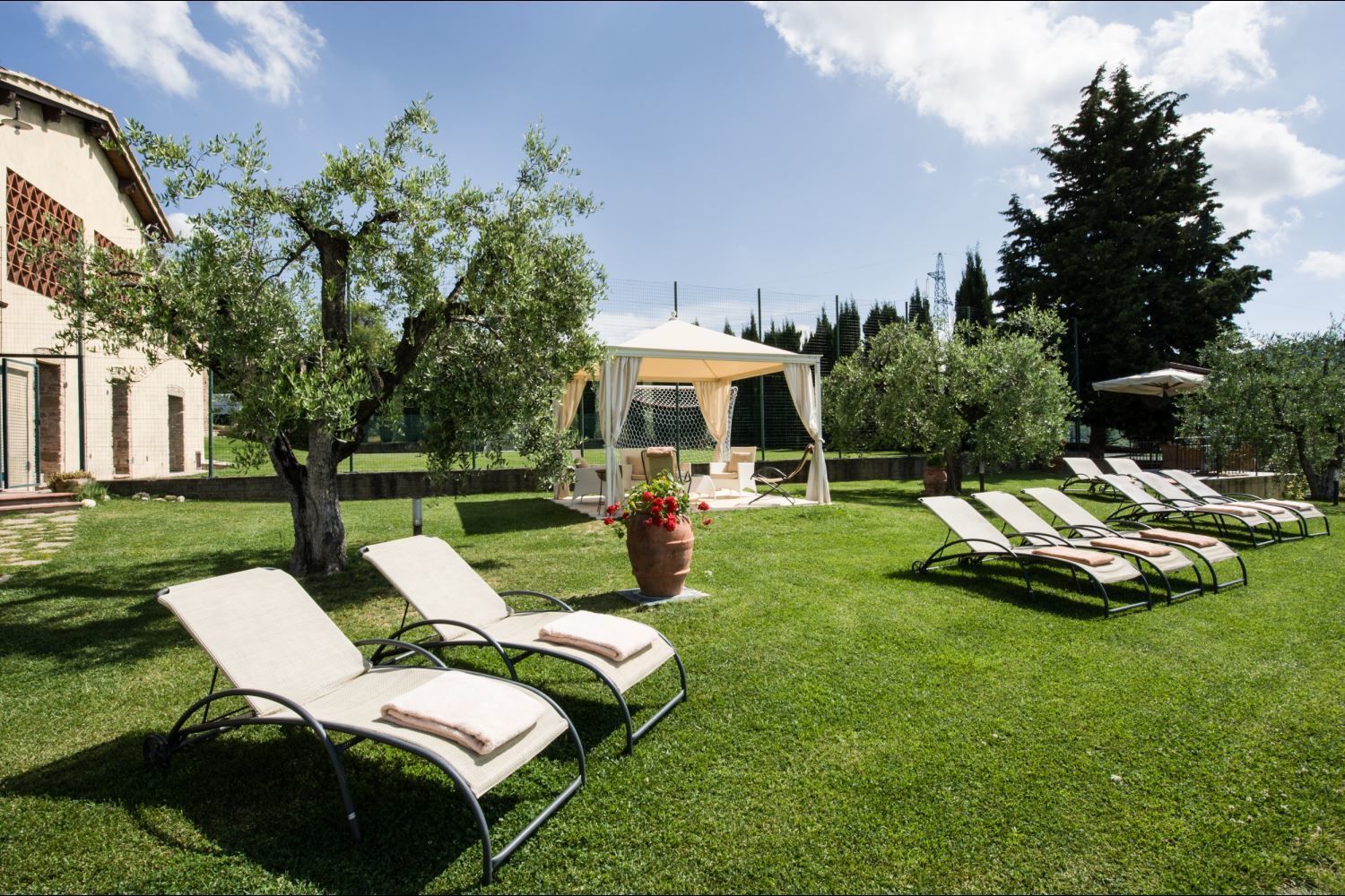 PREMIER ETAGE: avec accès par un escalier intérieur, trois chambres matrimoniales, chacune avec salle de bains privée avec douche, chambre matrimoniale avec deux lits simples d'appoint et salle de bains privée avec douche. Toutes les chambres disposent de la climatisation et sont situés à différents niveaux, afin de garantir privauté à notre hôtes. Pergola externe privée équipée avec table, chaises, canapé et barbecue.