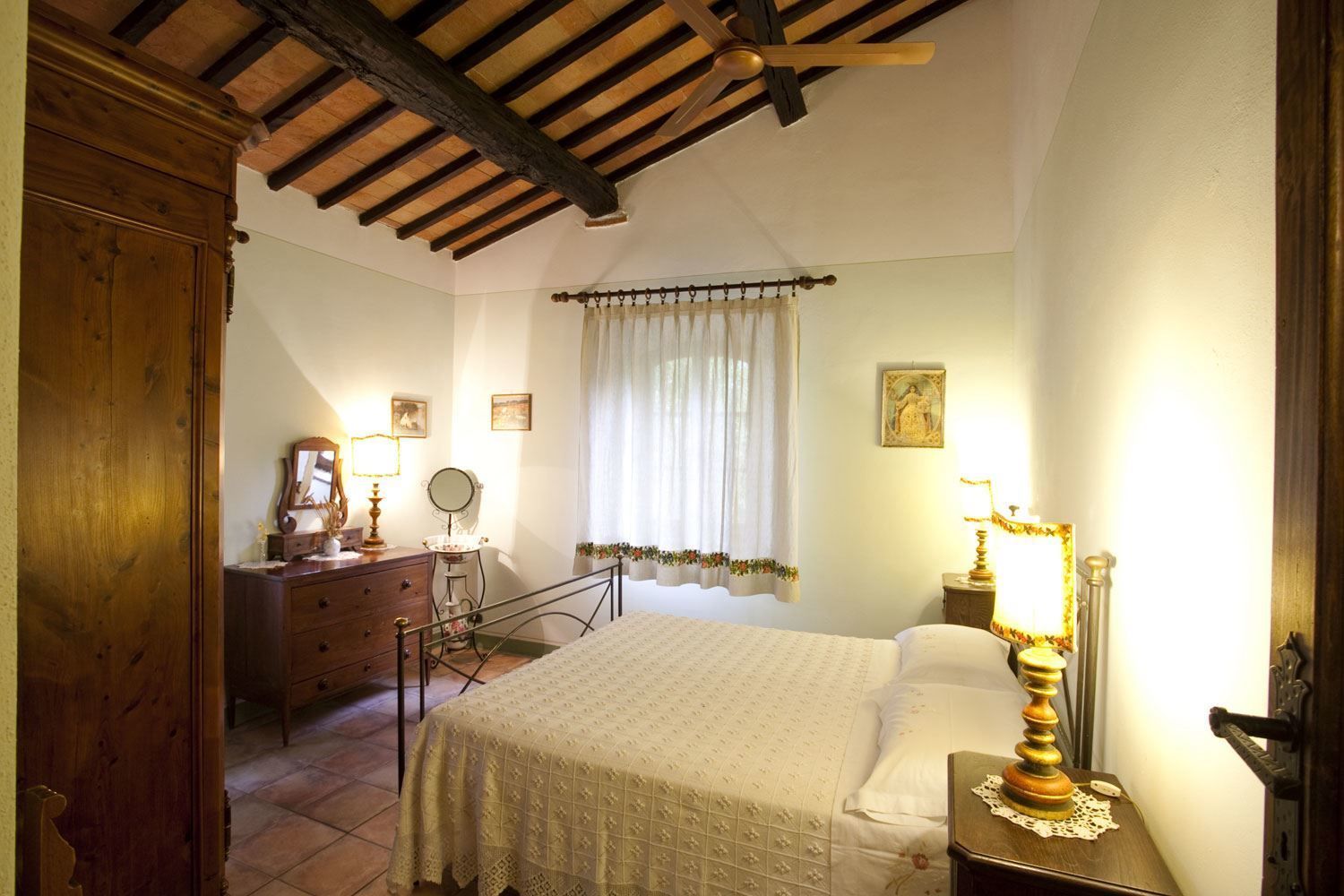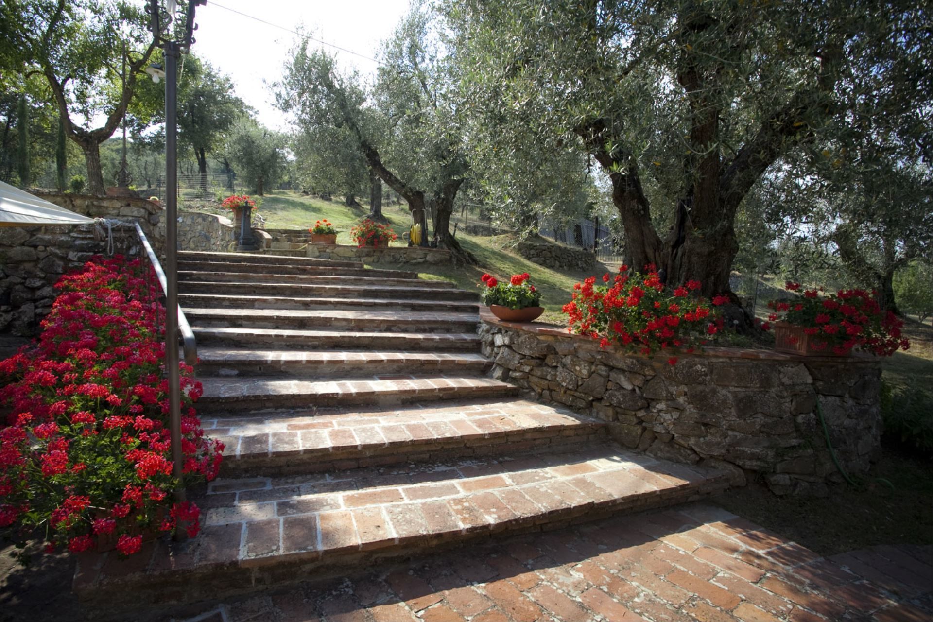 Tout autour de la villa s'étend la propriété avec 5 hectares de terrain, complètement clôturé, où se trouvent oliviers, vignoble, arbres de fruits et bois en position idéale pour faire de longues et énergisantes promenades. La villa est protejée par un bois qui garantit privauté et tranquillité.