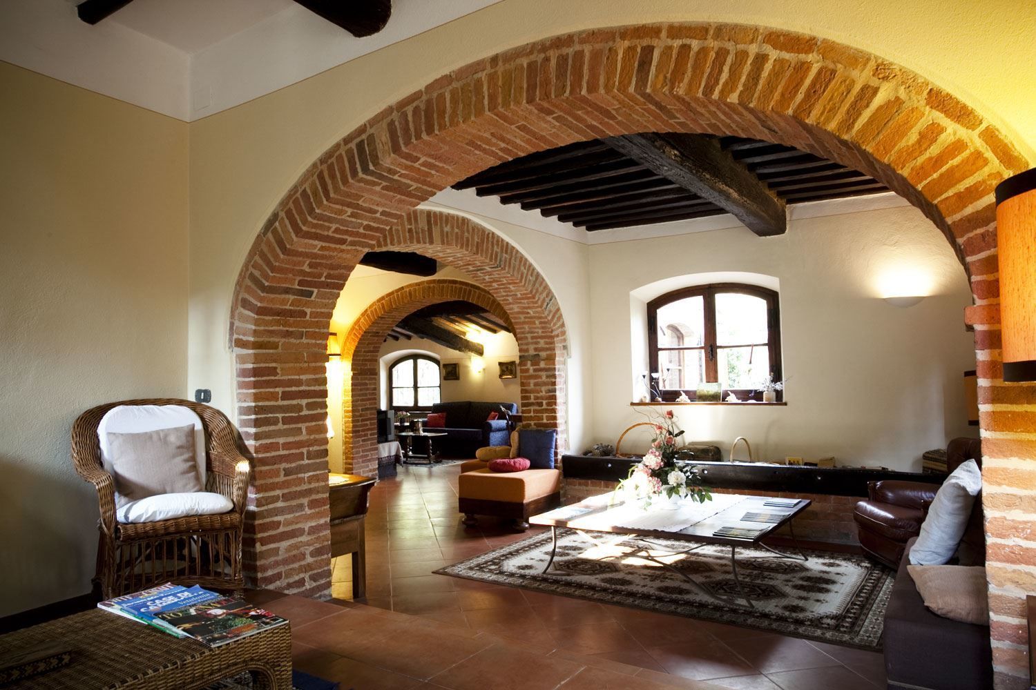 Dans les vertes collines de Sienne. Caractéristique maison de campagne en pierre et briques entièrement restaurée et aménagée en accueillante résidence de vacances, située dans les collines verdoyantes de la province de Sienne, à 6 km du village de Sinalunga, où se trouvent magasins et services de tout genre.