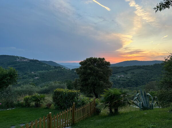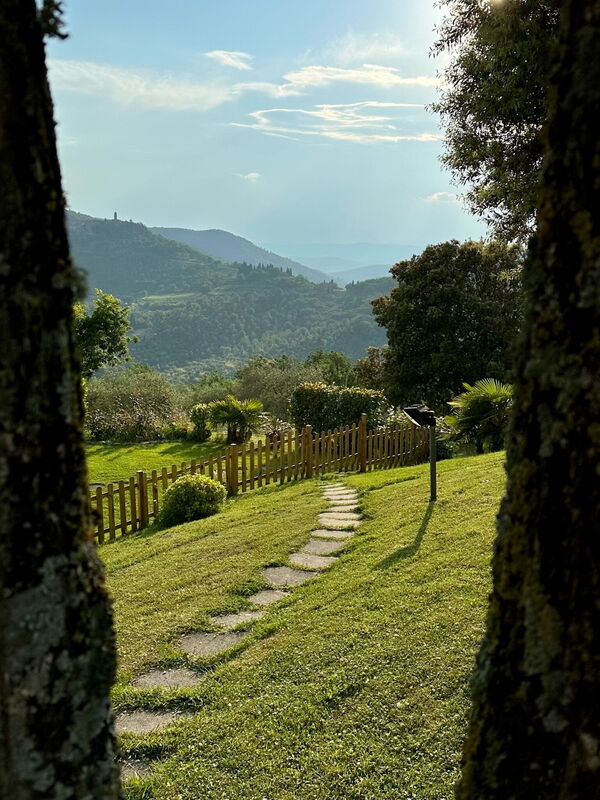 Villa individuelle avec piscine privée jouissant d’une vue magnifique et dominant la Val di Chiana à 4km de la petite ville de Civitella. Récemment restructurée, la maison a conservé le charme et les caractéristiques de l’architecture d’origine comme les planchers de briques terre cuite, les poutres apparentes aux plafonds, les arcs délimités de briques terre cuite, etc. Une belle terrasse devant la maison et un grand jardin offrent détente et tranquillité en contact avec la nature. La propriété est clôturée.