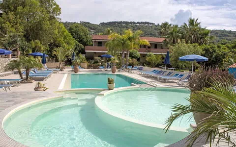 Santa Maria di Ricadi à 8 km de Tropea: Petit village de vacances accueillant pour les enfants, accueillant "Heaven", environné par les arbres. Dans l'arrondissement Santa Maria di Ricadi, situation ensoleillée, à 550 m de la mer, à 550 m de la plage. En commun: jardin entretenu, plantes et fleurs, pré, piscine (12 x 6 m, profondeur 90 - 150 cm, disponibilité saisonnière: 16.Avr. - 29.Oct. horaires d'ouverture de la piscine: 08:00-14:00 et 16:00-20:00). Douche extérieure, terrain de volley-ball, jardinet, meubles de jardin, barbecue, espace de jeux pour les enfants (toboggan, balançoire). Infrastructures de la résidence: réception, restaurant, bar, Connexion WIFI, baby foot, terrasse ensoleillée, lave-linge (en commun, en sus). Change de linge (suppl. en sus). Changementde linge de toilette (suppl. en sus). Petit-déjeuner et Demi-pension possible (en sus). Navette depuis l´aéroport (en sus). Place de parking sur le terrain. Magasins, magasin d'alimentation, supermarché, restaurant, bar 500 m, centre à 10 minutes à pieds, arrêt de bus 1 km, gare ferroviaire "Ricadi" 5 km, plage de sable "Santa Maria di Ricadi" 550 m. Attractions à proximité: Baia di Grotticelle 1 km, Tropea 8 km, Faro Capo Vaticano 3 km, Vibo Valentia 30 km, Reggio Calabria 90 km. Veuillez noter: adapté(e) aux familles, équipement pour bébés sur demande. Vente locale de produits de la ferme. La photo ne montre qu’un exemple de location de vacances. D’autres appartements sont également proposés à la location dans cette maison de vacances. Les locations peuvent également se différencier par l'emplacement, la taille et les caractéristiques du terrain. inclus dans le prix : piscine, miniclub, petites animations, navette de/pour la mer, parking, transferts gare Ricadi arrivée/départ. Les appartements sont situés au rez-de-chaussée ou au premier étage et disposent de véranda ou de patio.