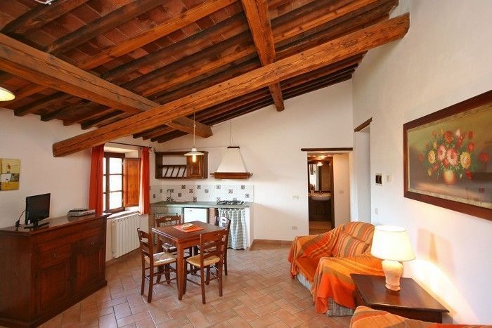 Premier étage: séjour/salle à manger (TV-Sat) avec canapé-lit double et coin-cuisson, une chambre double, salle de bains avec douche.