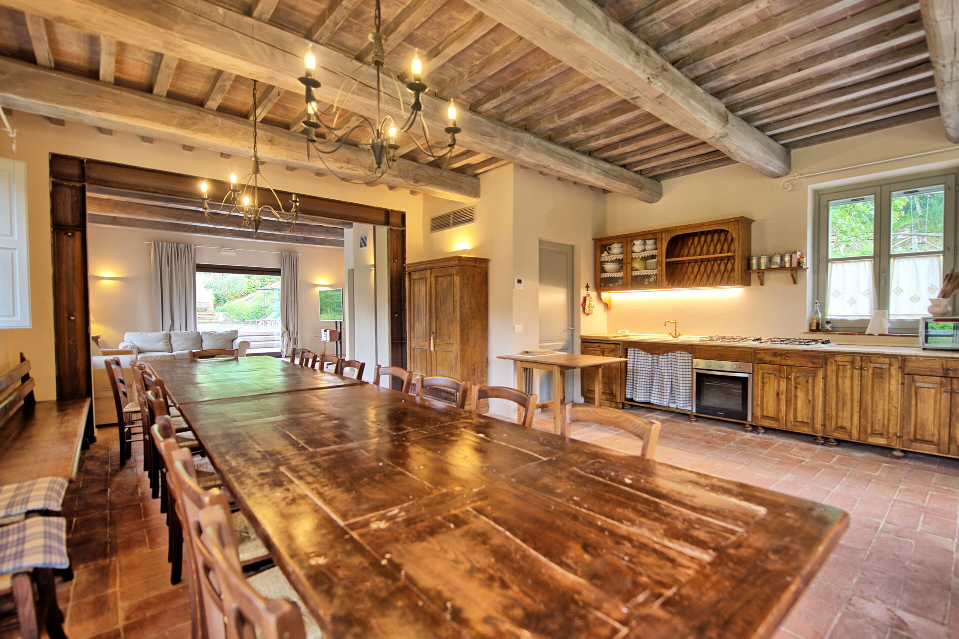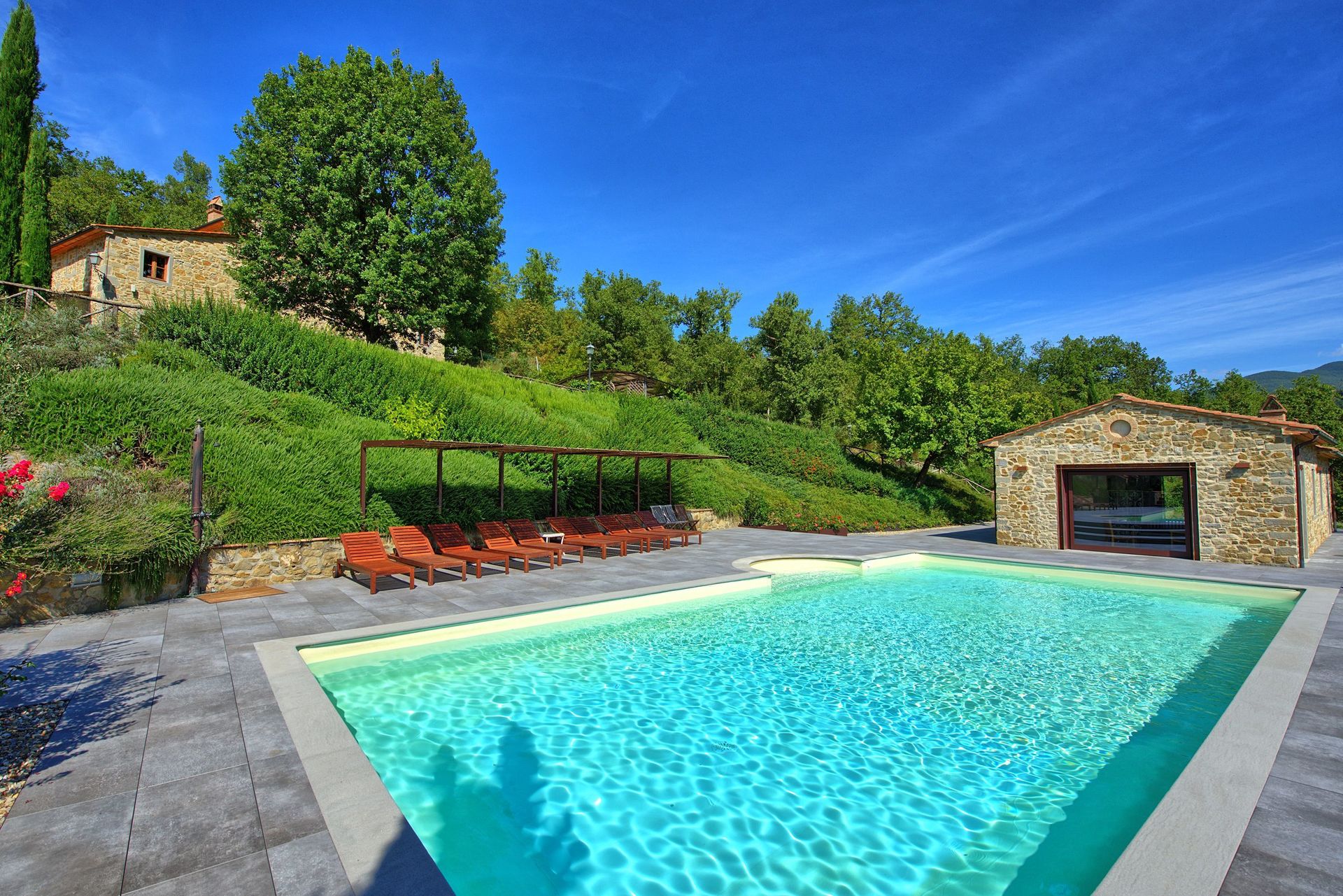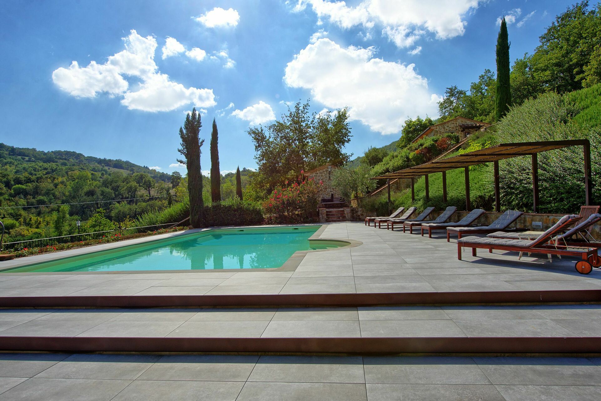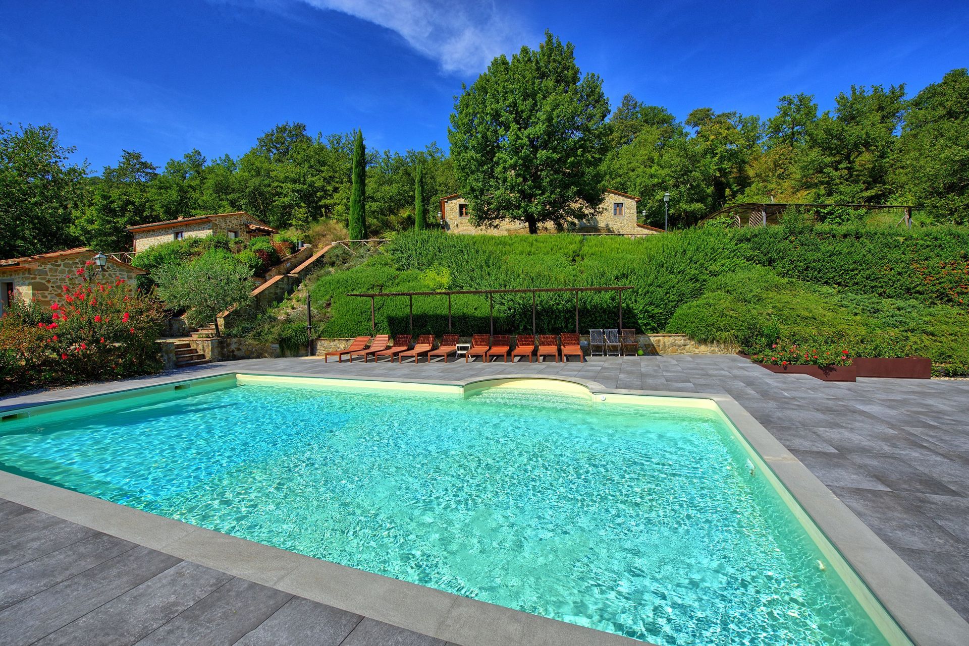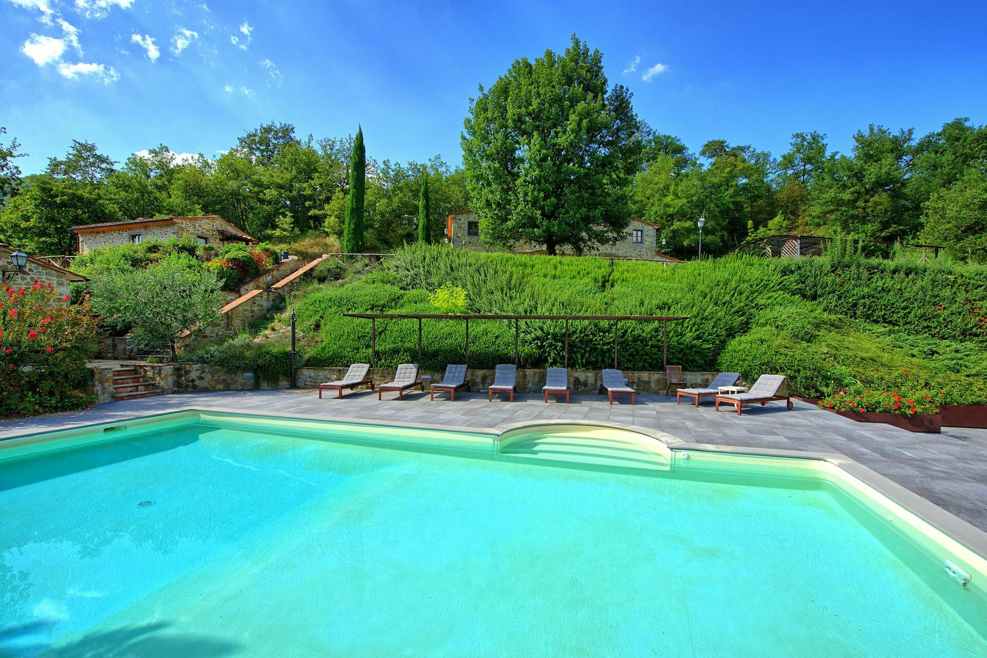 La propriété qui se compose de la maison principale (la casa colonica) et de deux dépendances (anciennes granges) afin d'offrir aux hôtes un maximum d'intimité et la possibilité de passer les vacances en famille ou entre amis grâce à de nombreuses et grandes zones communes comme la salle à manger, le coin barbecue à l’extérieur et le grand pavillon avec tables et chaises pour les repas en plein air. Jardin clôturé avec pré bien entretenu, plantes, arbres, une belle piscine privée et solarium avec chaises longues et parasols. Un endroit idéal, durant les chaudes journées d’été, pour profiter du soleil où se rafraîchir au bord de la piscine entourés du magnifique paysage typique de la région toscane.