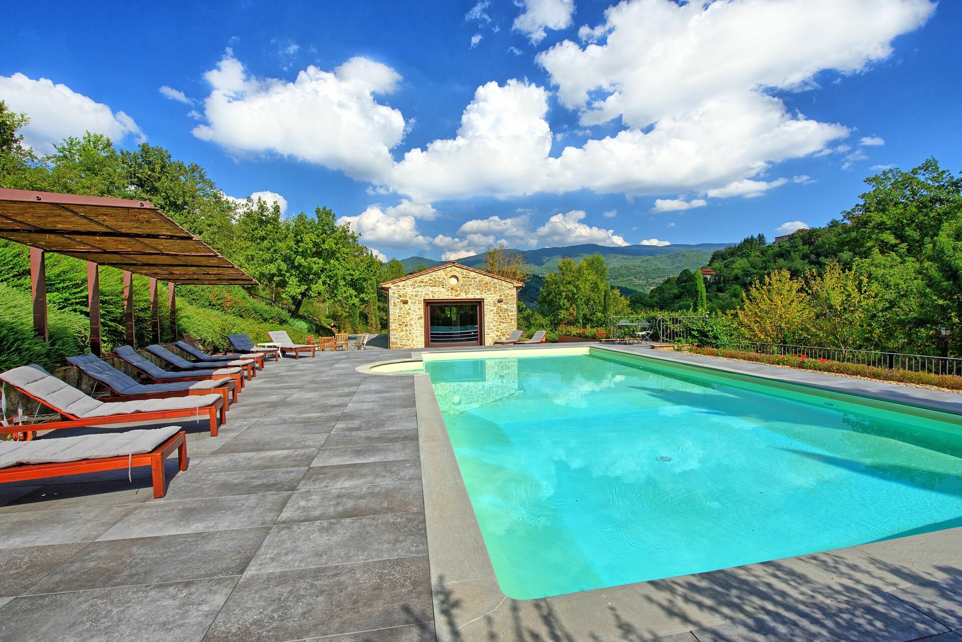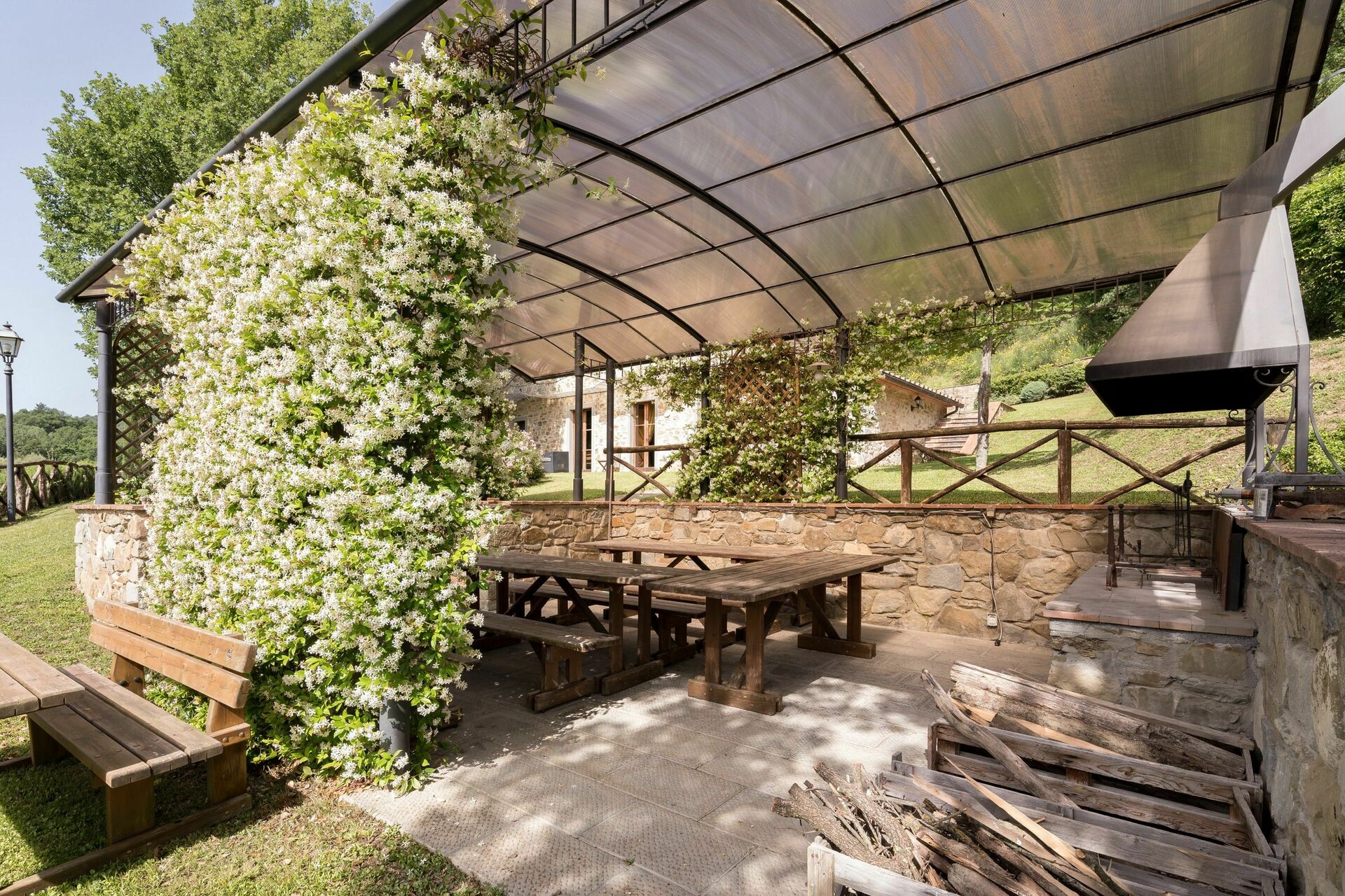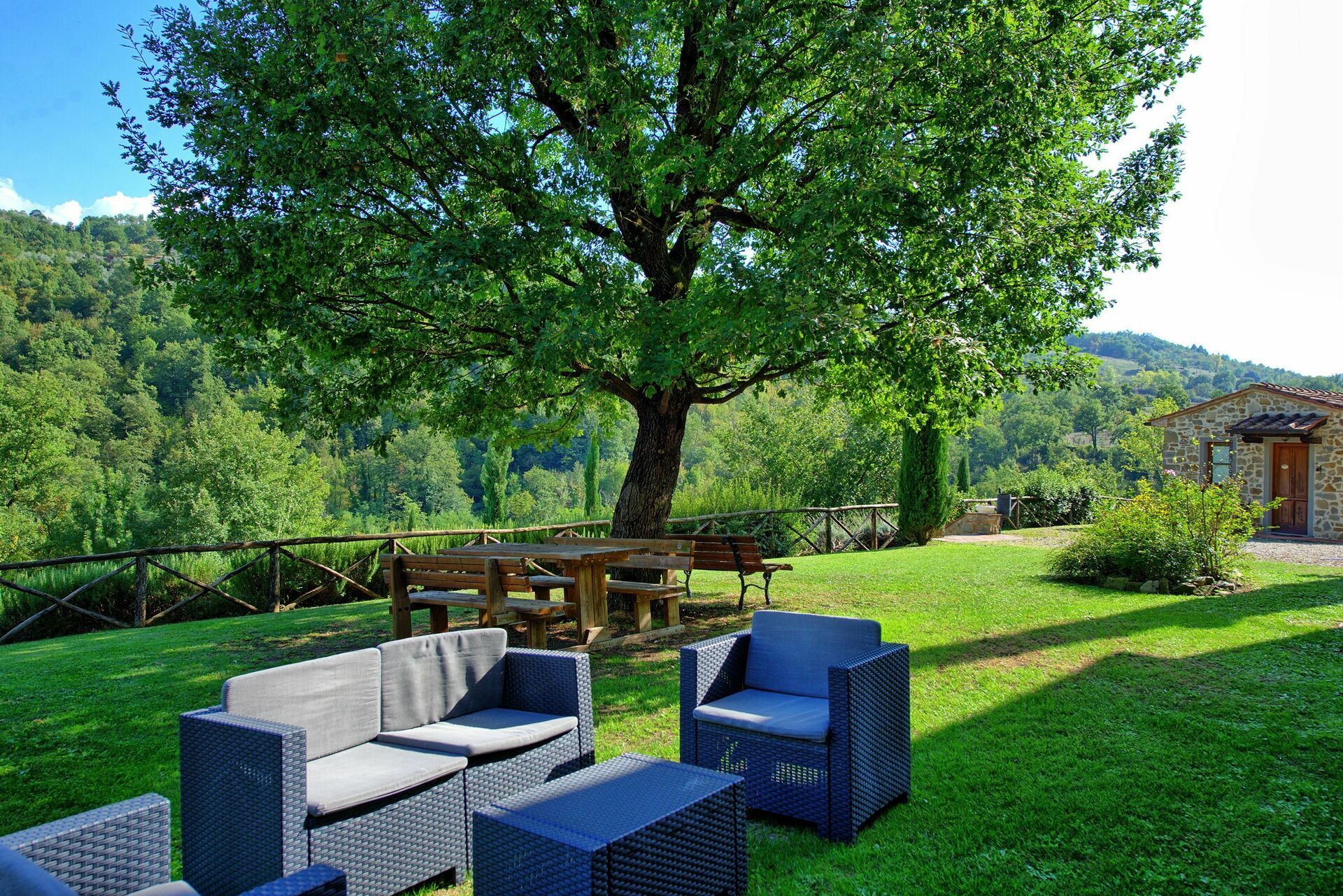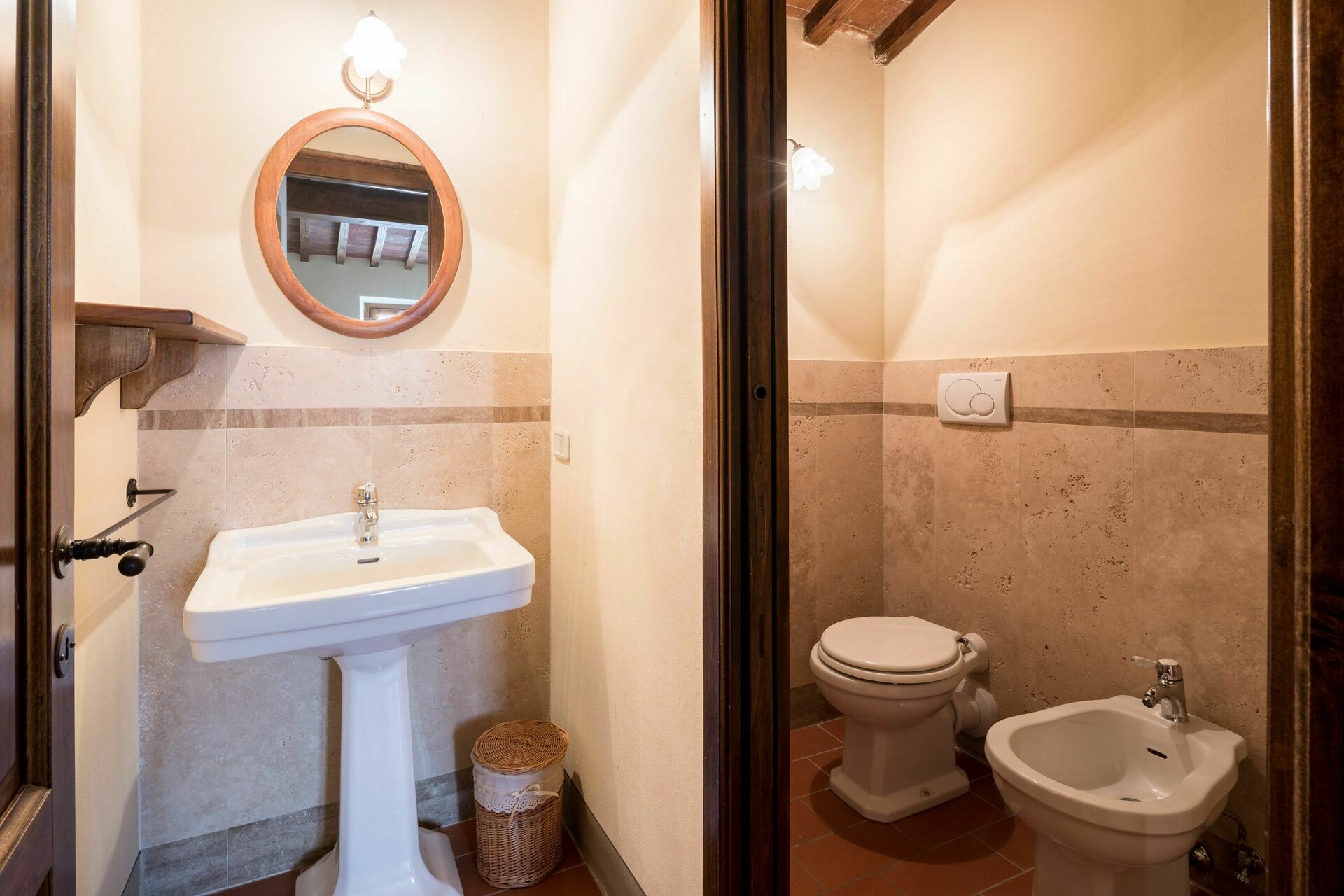 La propriété qui se compose de la maison principale (la casa colonica) et de deux dépendances (anciennes granges) afin d'offrir aux hôtes un maximum d'intimité et la possibilité de passer les vacances en famille ou entre amis grâce à de nombreuses et grandes zones communes comme la salle à manger, le coin barbecue à l’extérieur et le grand pavillon avec tables et chaises pour les repas en plein air. Jardin clôturé avec pré bien entretenu, plantes, arbres, une belle piscine privée et solarium avec chaises longues et parasols. Un endroit idéal, durant les chaudes journées d’été, pour profiter du soleil où se rafraîchir au bord de la piscine entourés du magnifique paysage typique de la région toscane.