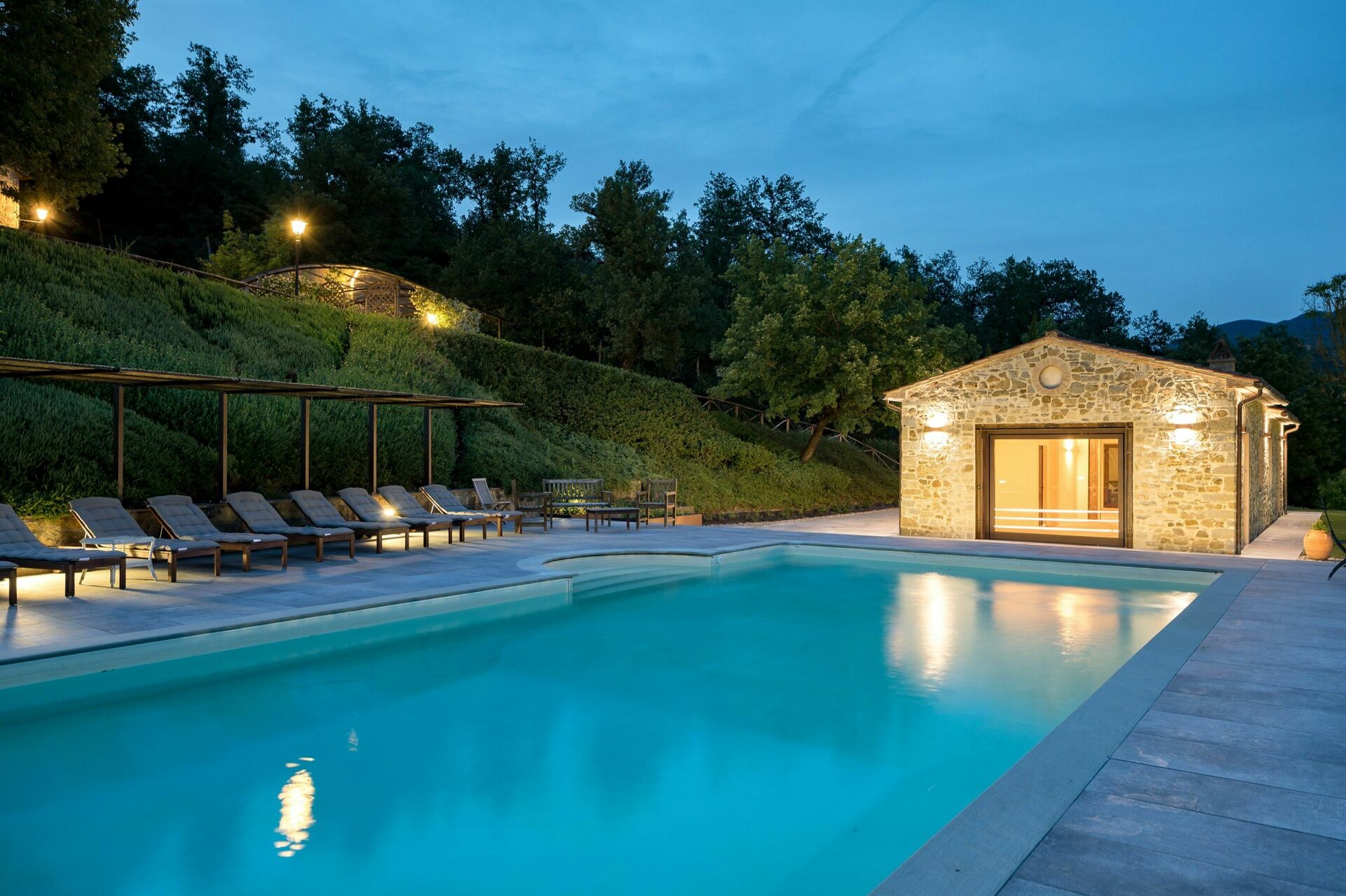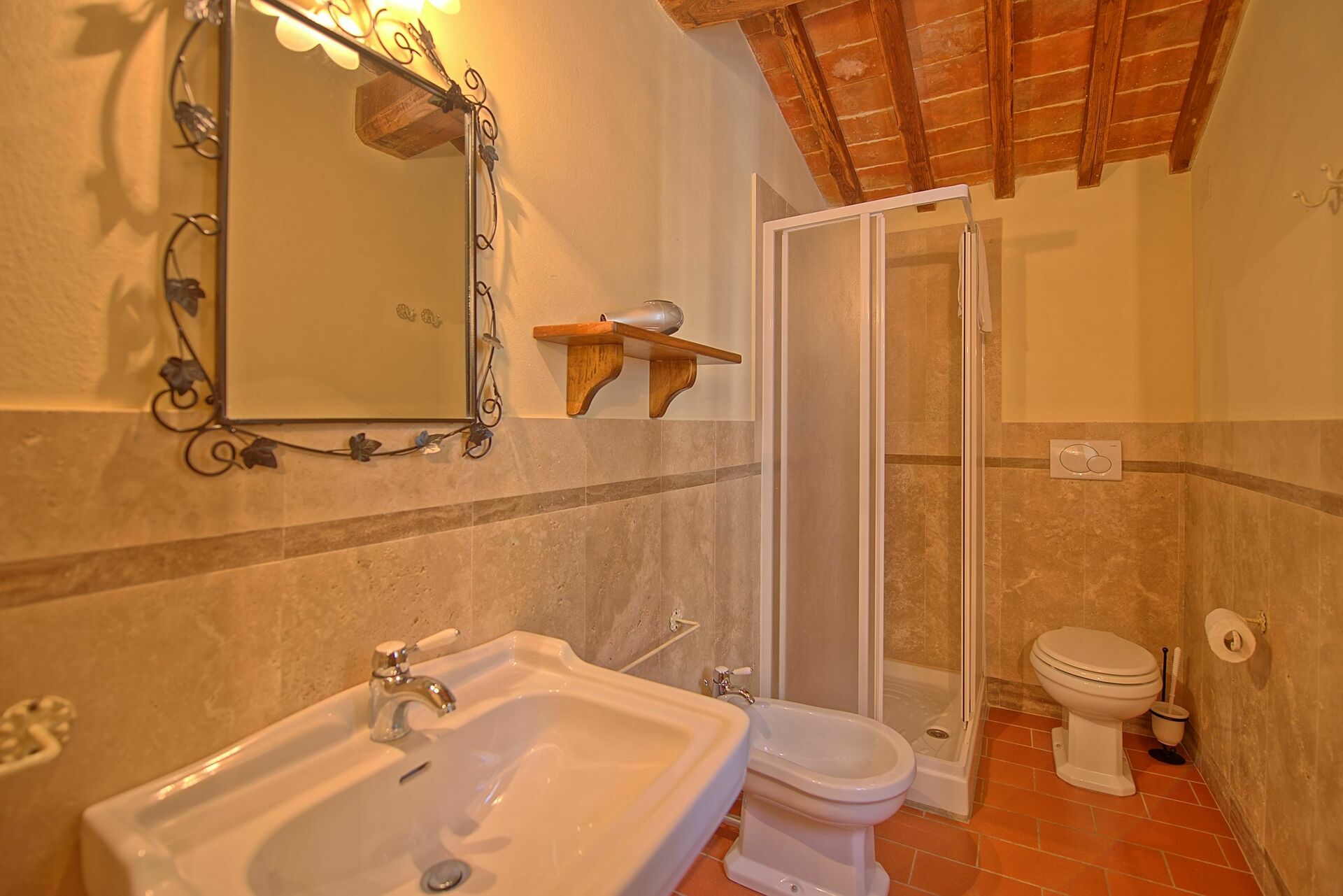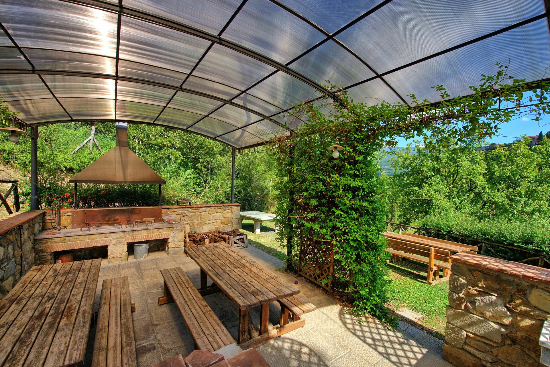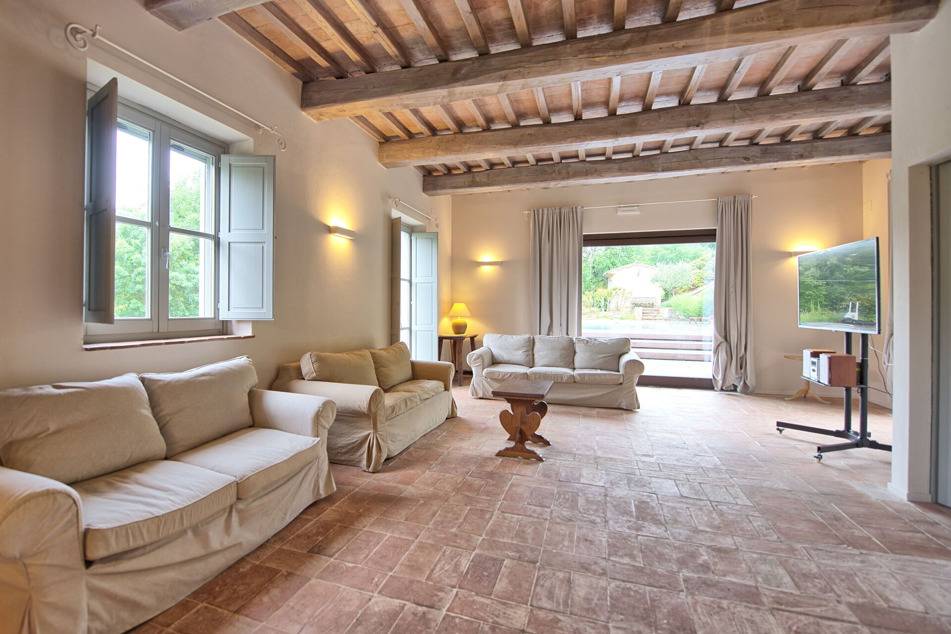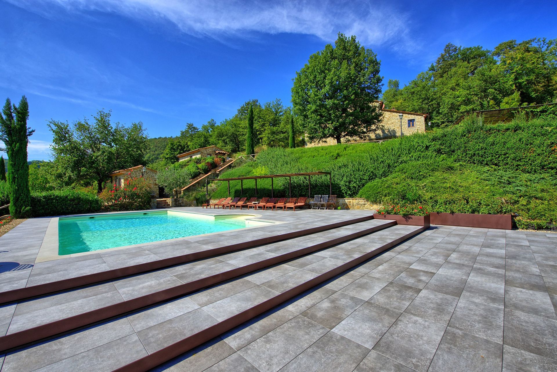 La propriété qui se compose de la maison principale (la casa colonica) et de deux dépendances (anciennes granges) afin d'offrir aux hôtes un maximum d'intimité et la possibilité de passer les vacances en famille ou entre amis grâce à de nombreuses et grandes zones communes comme la salle à manger, le coin barbecue à l’extérieur et le grand pavillon avec tables et chaises pour les repas en plein air. Jardin clôturé avec pré bien entretenu, plantes, arbres, une belle piscine privée et solarium avec chaises longues et parasols. Un endroit idéal, durant les chaudes journées d’été, pour profiter du soleil où se rafraîchir au bord de la piscine entourés du magnifique paysage typique de la région toscane.