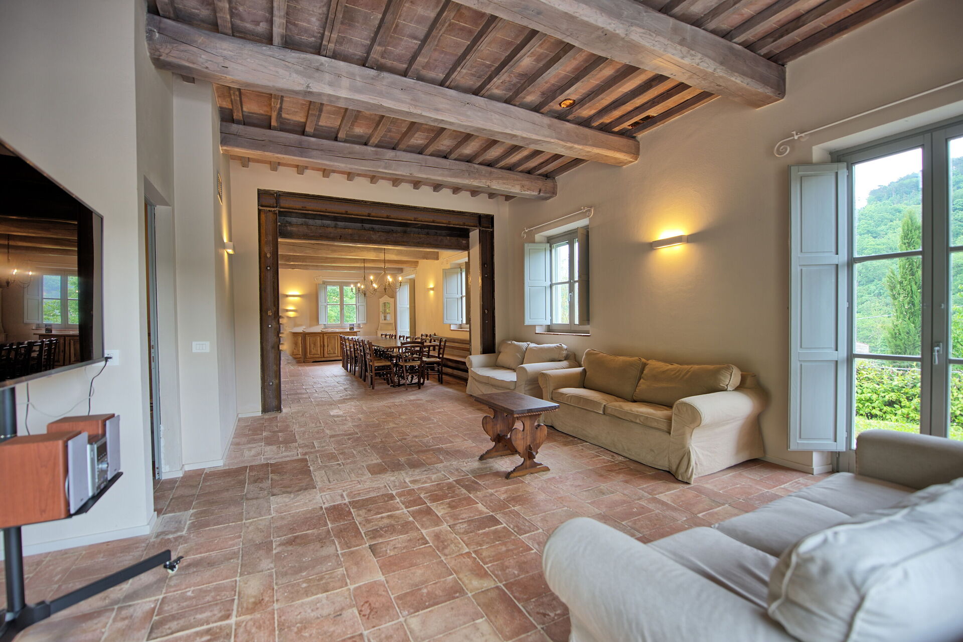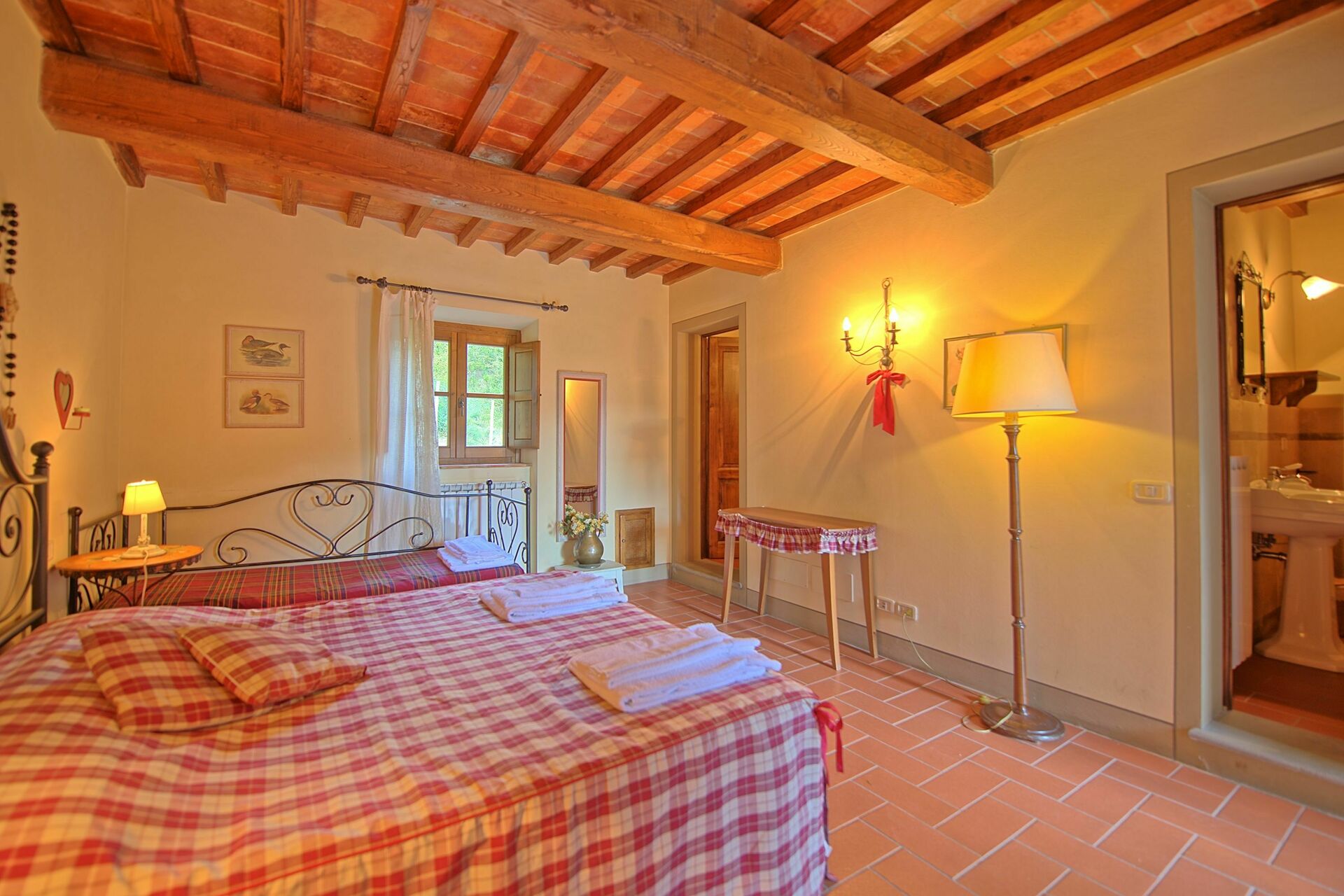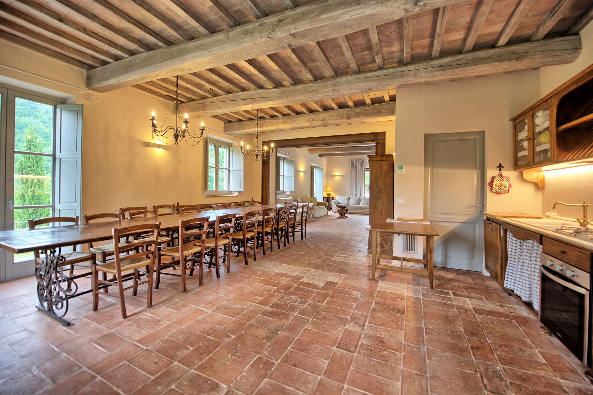 Intérieurs accueillants meublés de façon confortable, selon le style rustique qui avec des matériaux comme le bois, la pierre et la terre cuite, matériaux utilisés dans les anciennes constructions rurales toscane, créent un cadre original et suggestif. Grâce aux 7 chambres à coucher et aux nombreuses zones communes, Villa Casentino peut héberger jusqu’à 16/20 personnes. La maison dispose de tous les conforts pour garantir aux hôtes un agréable séjour en tout relax. Dans la dépendance proche de la piscine, a été réalisée une grande pièce équipée pour organiser mariages, réunions ou autres événements. Cette dépendance ne peut pas être louée séparément mais n’est pas comprise dans le prix de location (prix sur demande).