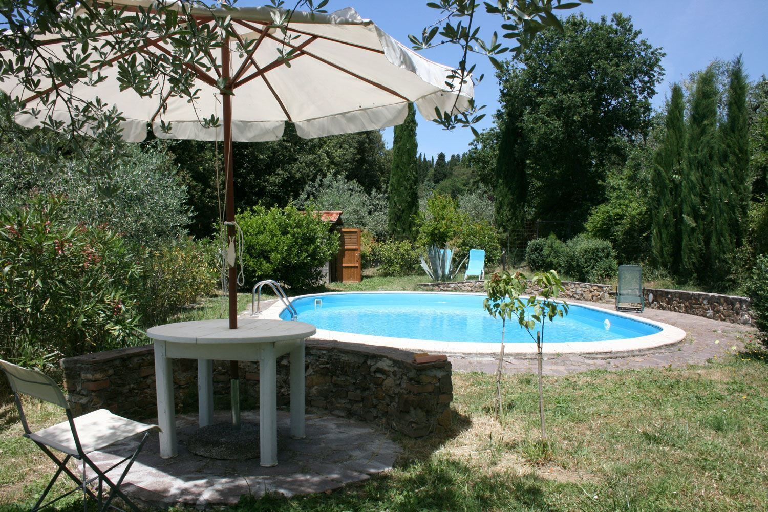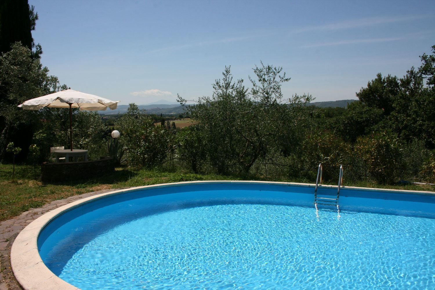 La villa, le jardin et la piscine. Villa Laura peut vanter un grand jardin panoramique, une terrasse donnant sur le Valdichiana équipée avec kiosque, table, chaises et barbecue où on pourra diner et se détendre en relax tout en admirant le magnifique paysage des collines toscanes. La piscine (dim. 9x6m , prof. m 1,40) est équipée de douche externe. L'ameublement est agréable et confortable et garantit un bon niveau de confort .
