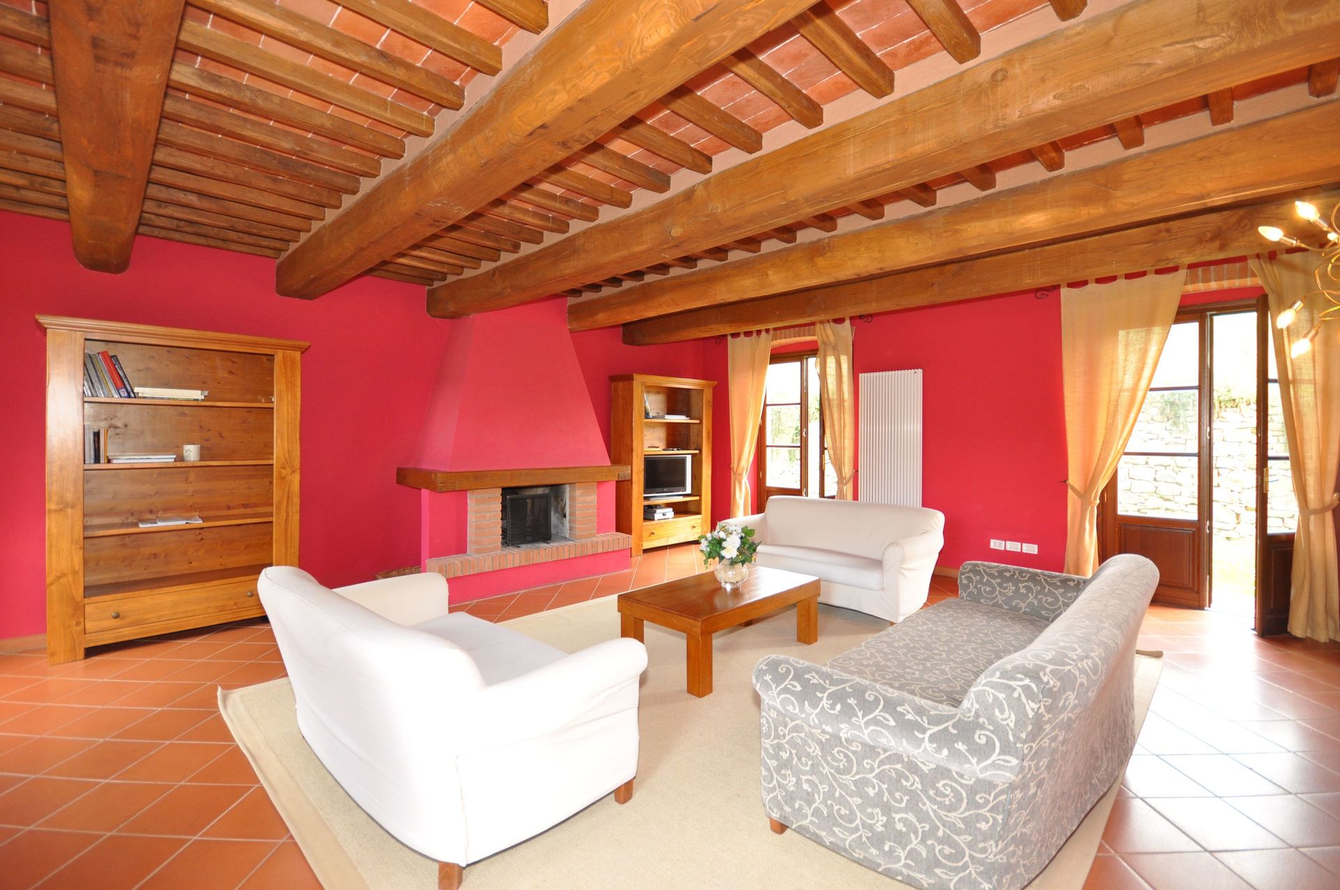 Rez-de-chaussée: entrée sur un grand séjour (TV-Sat) avec cheminée, zone repas avec cuisine (four, freezer, lave-vaisselle) et accès sur l’extérieur.