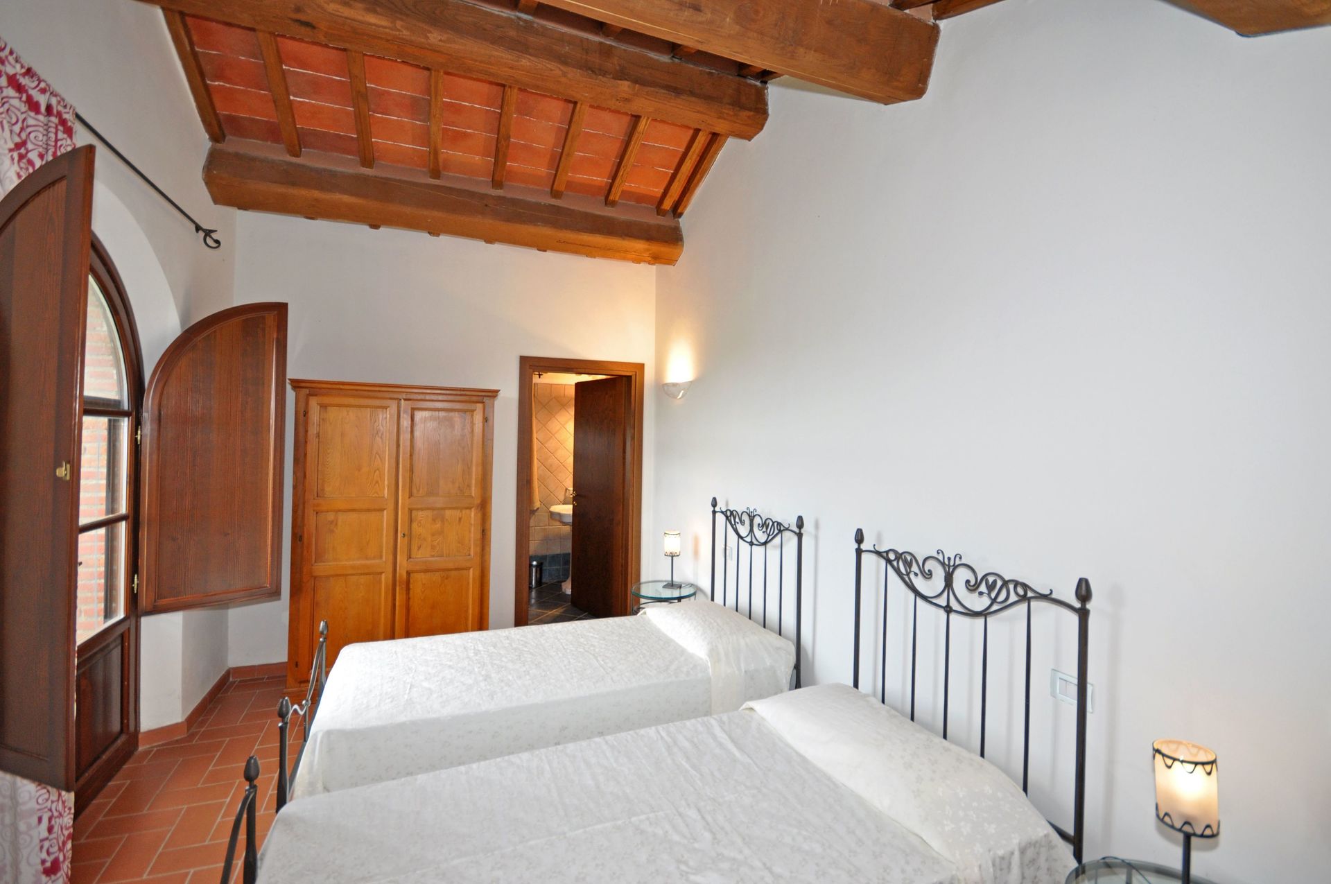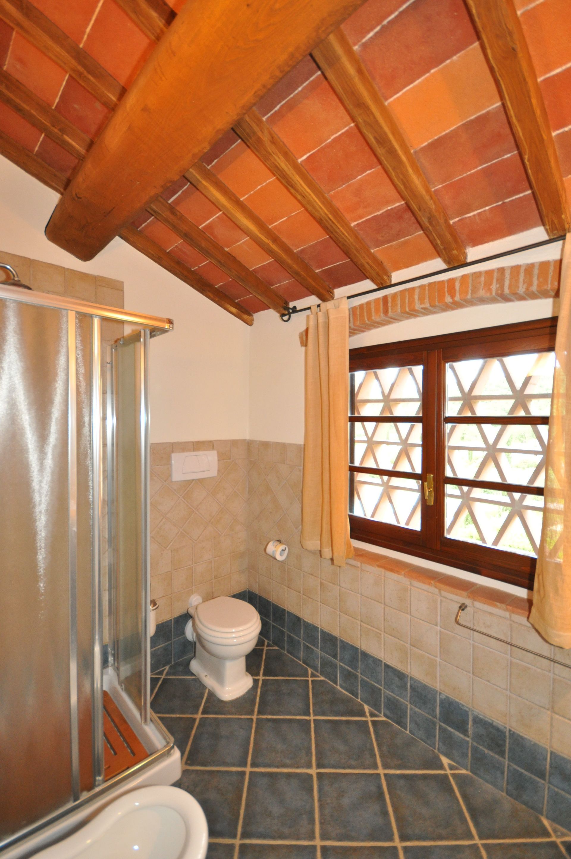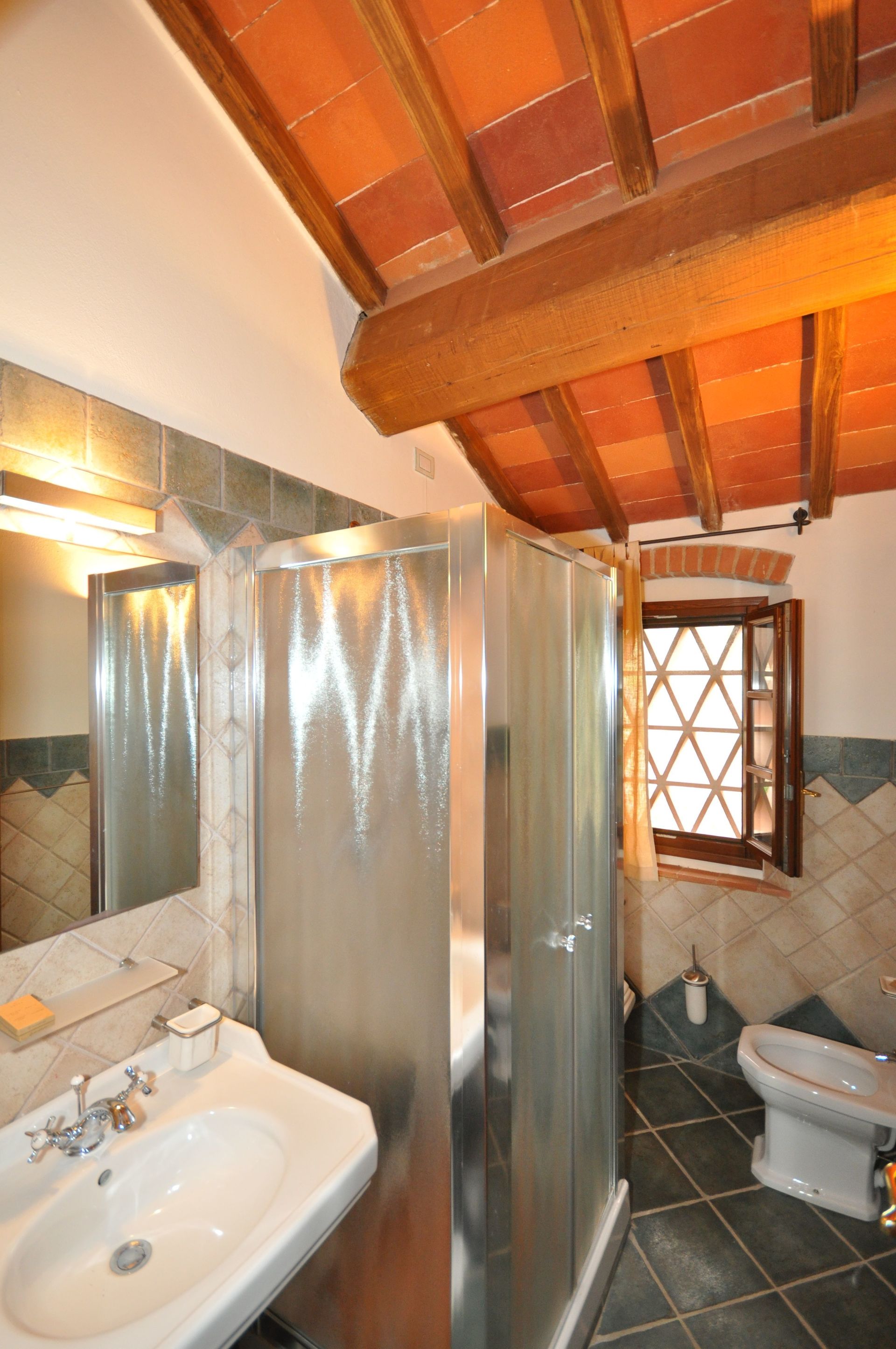 Premier étage : 2 chambres doubles avec salle de bains privée avec douche, une chambre avec 2 lits à une place et salle de bains privée avec douche.