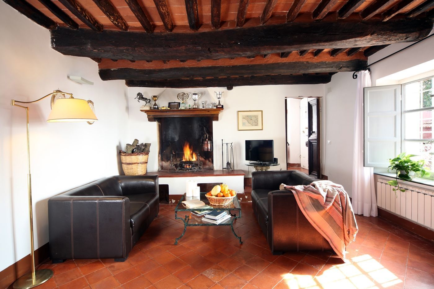 Rez de chaussée: entrée, cuisine (four, micro-ondes, freezer, lave-vaisselle, cafetière, bouilloire électrique), salle à manger attenante à la cuisine ( 8 personnes), salle à manger secondaire ( jusqu'à 24 personnes), salon avec poêle à pellet (sur demande et prix selon consommation), salon (TV) avec cheminée, toilette.