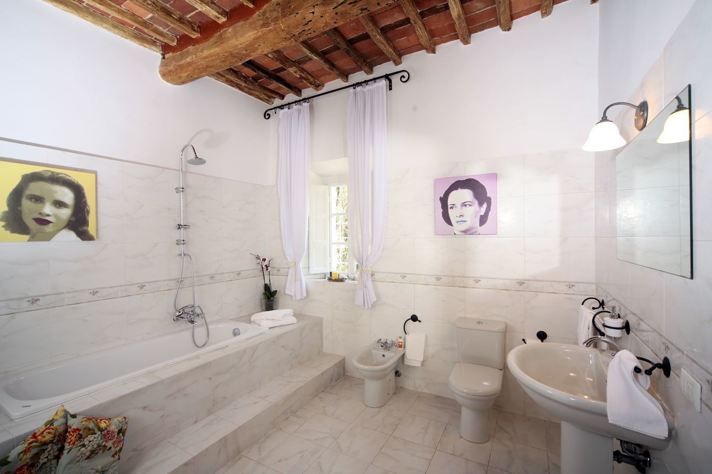 Suite Claudia: grand lit, salle de bain avec douche.