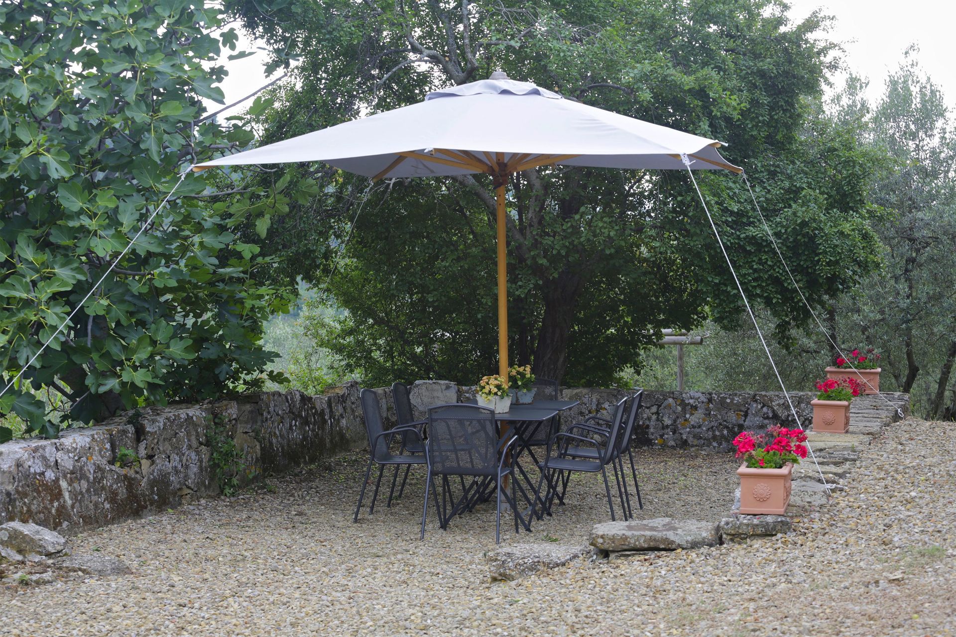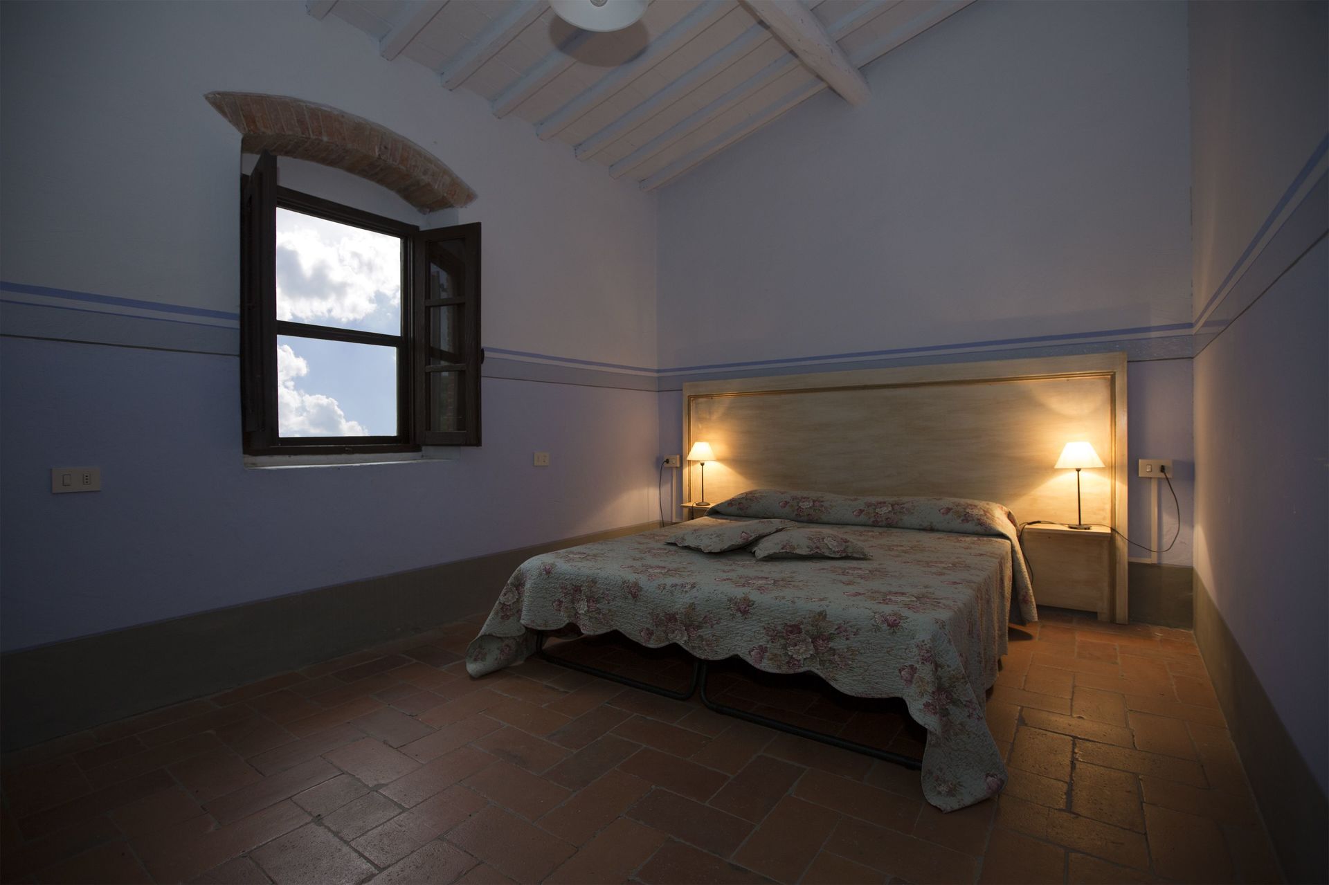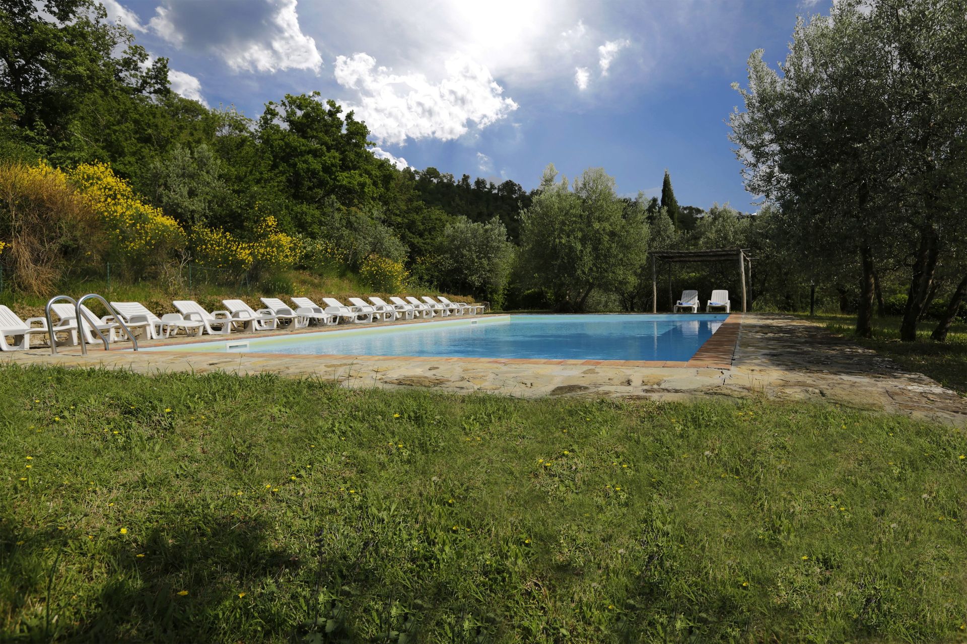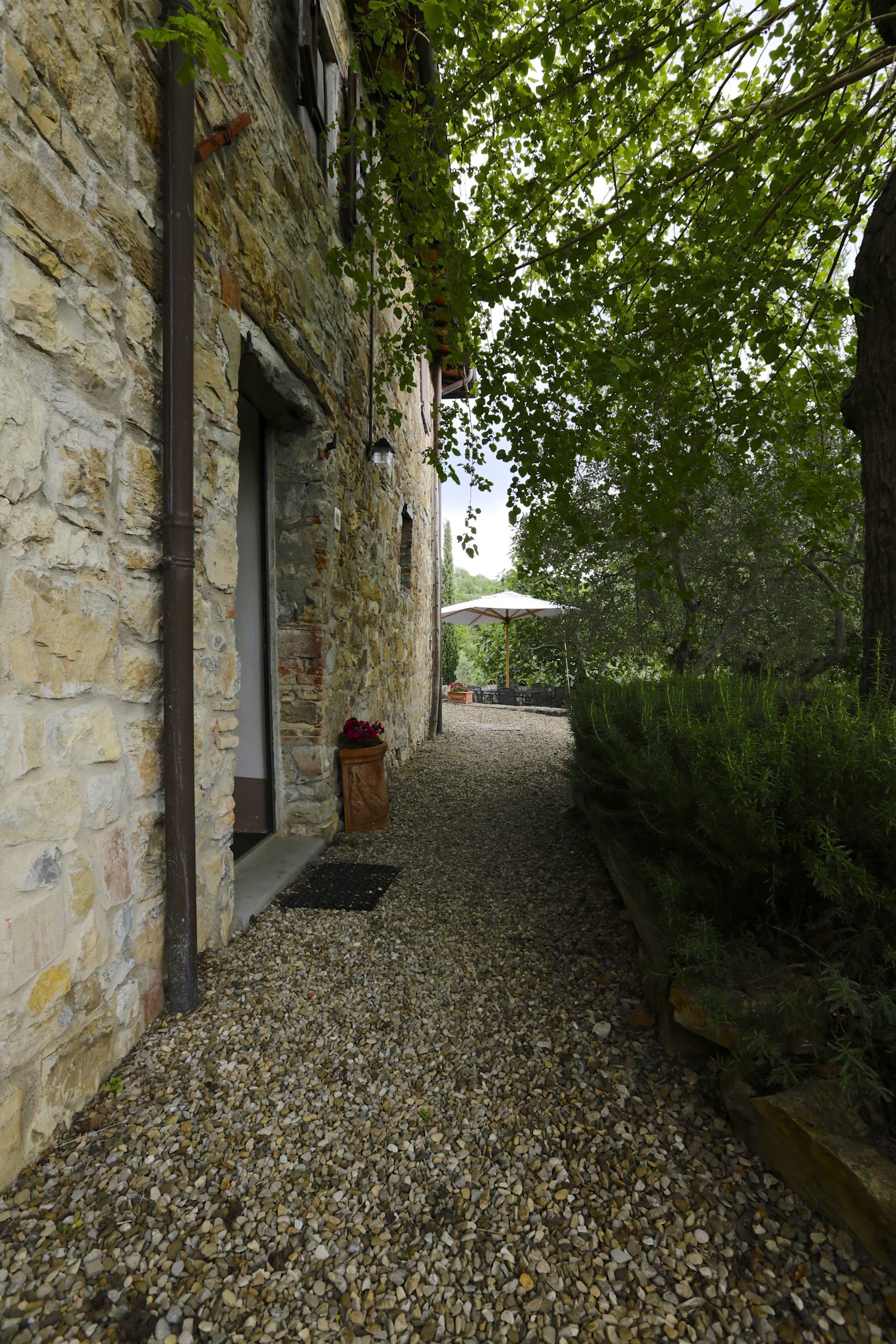 L'entrée principale donne directement dans le séjour. L'appartement est décoré avec des sols en terre cuite toscane selon la tradition et aux plafonds avec les poutres en bois.